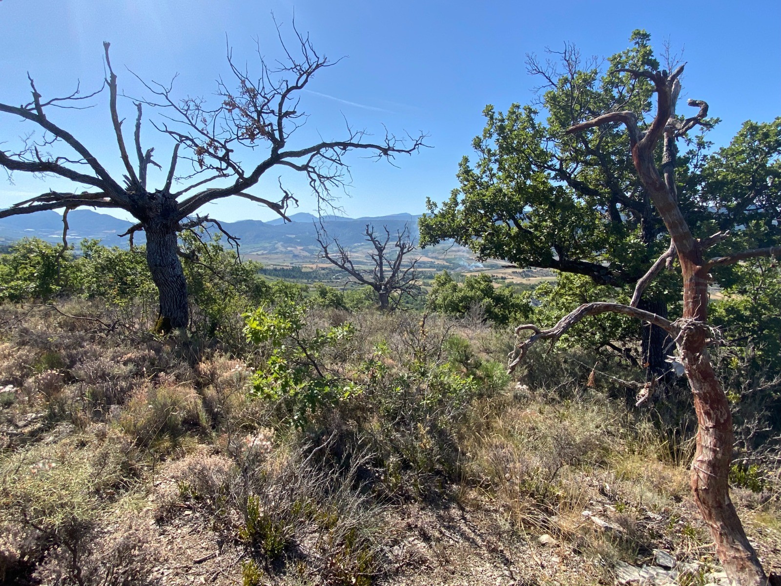 Quelques chênes bien que chétifs me donnent un peu d’ombre.