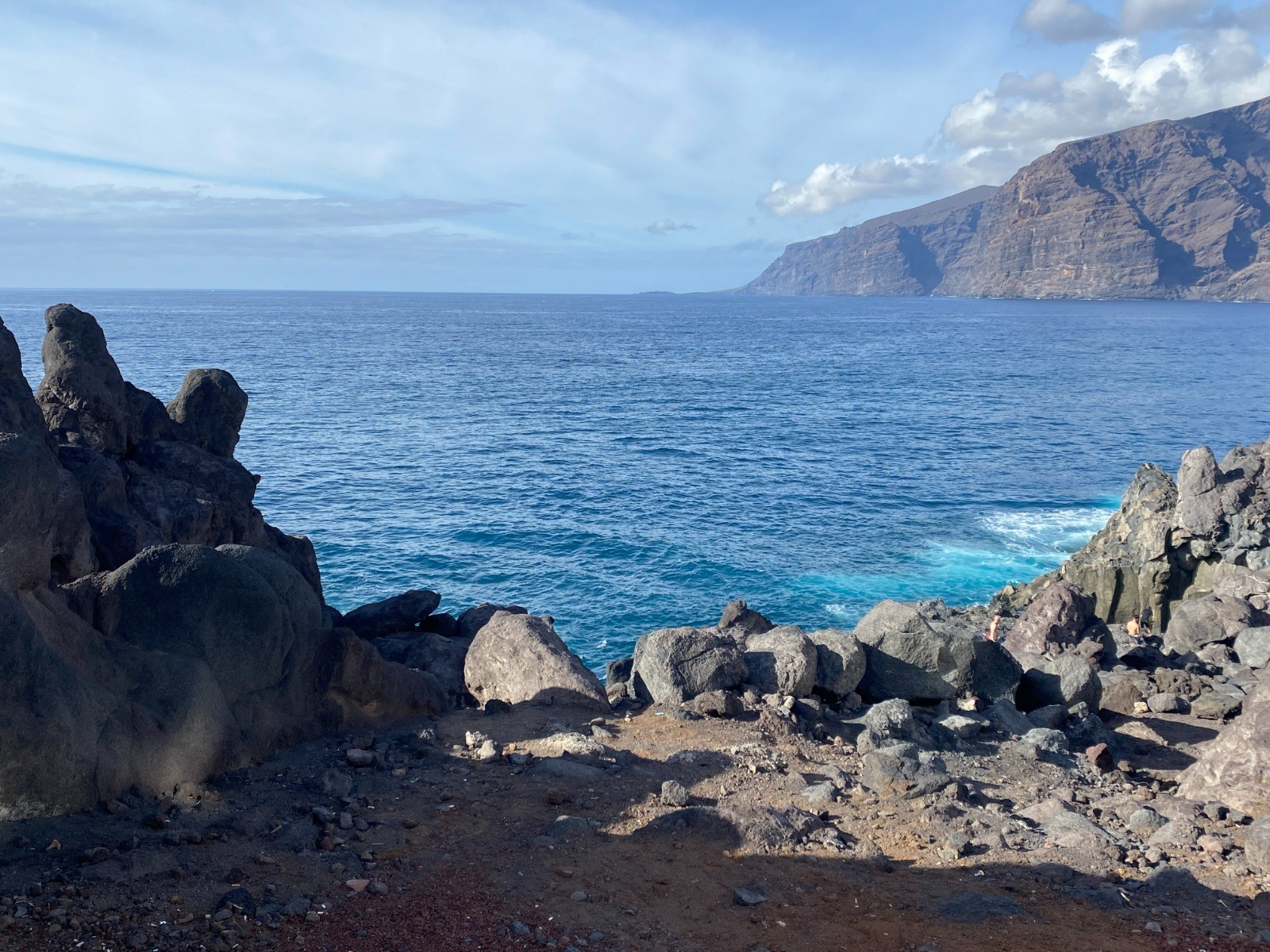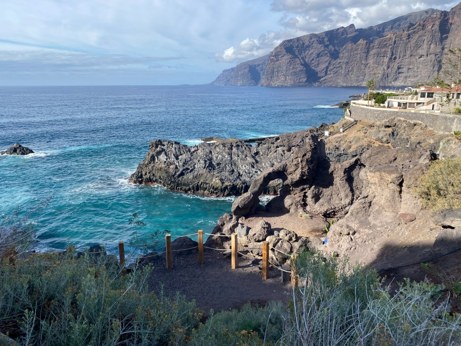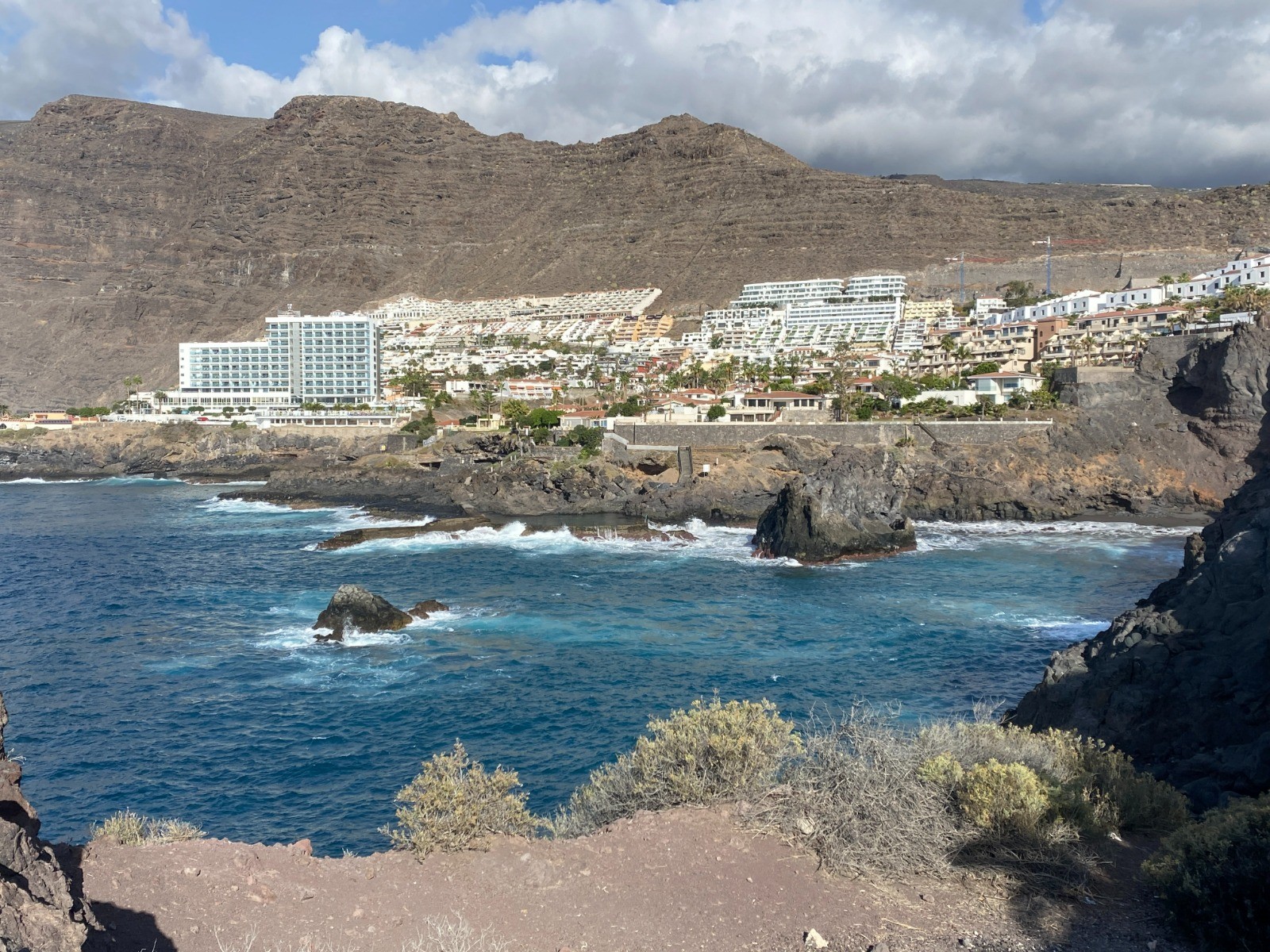 En partant de mon hôtel : découverte de la côte rocheuse avant d'arriver au port de plaisance Marina de Los Gigantes.