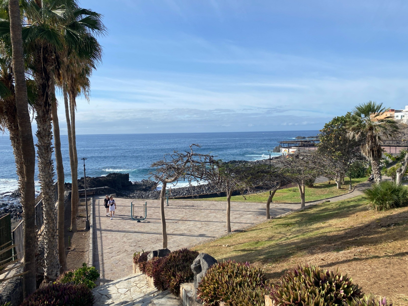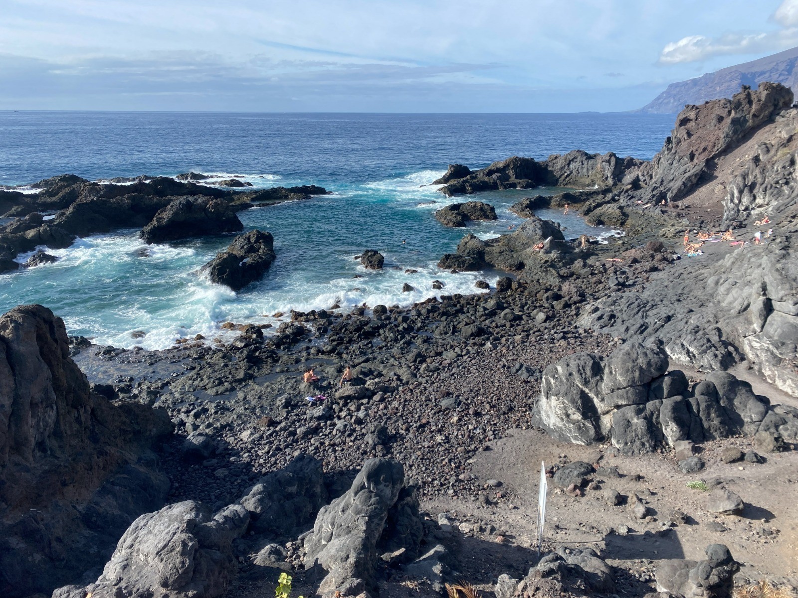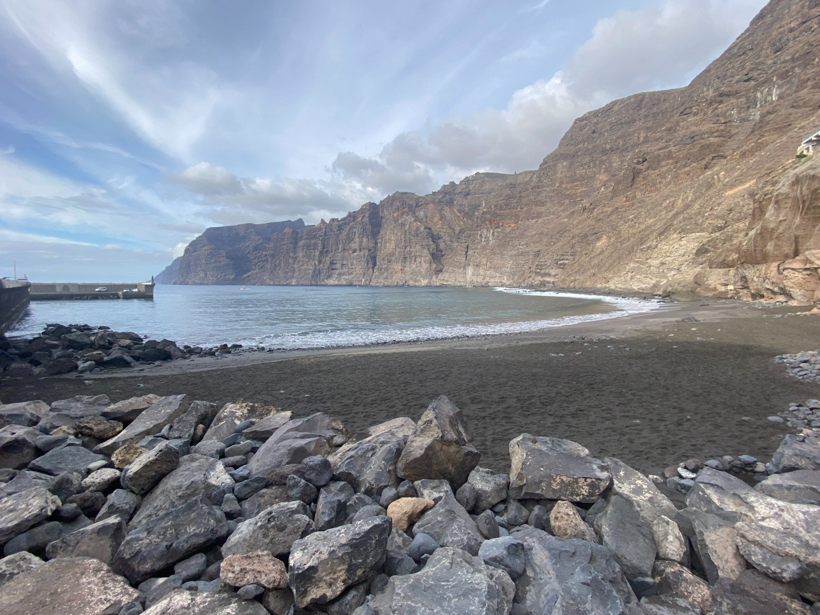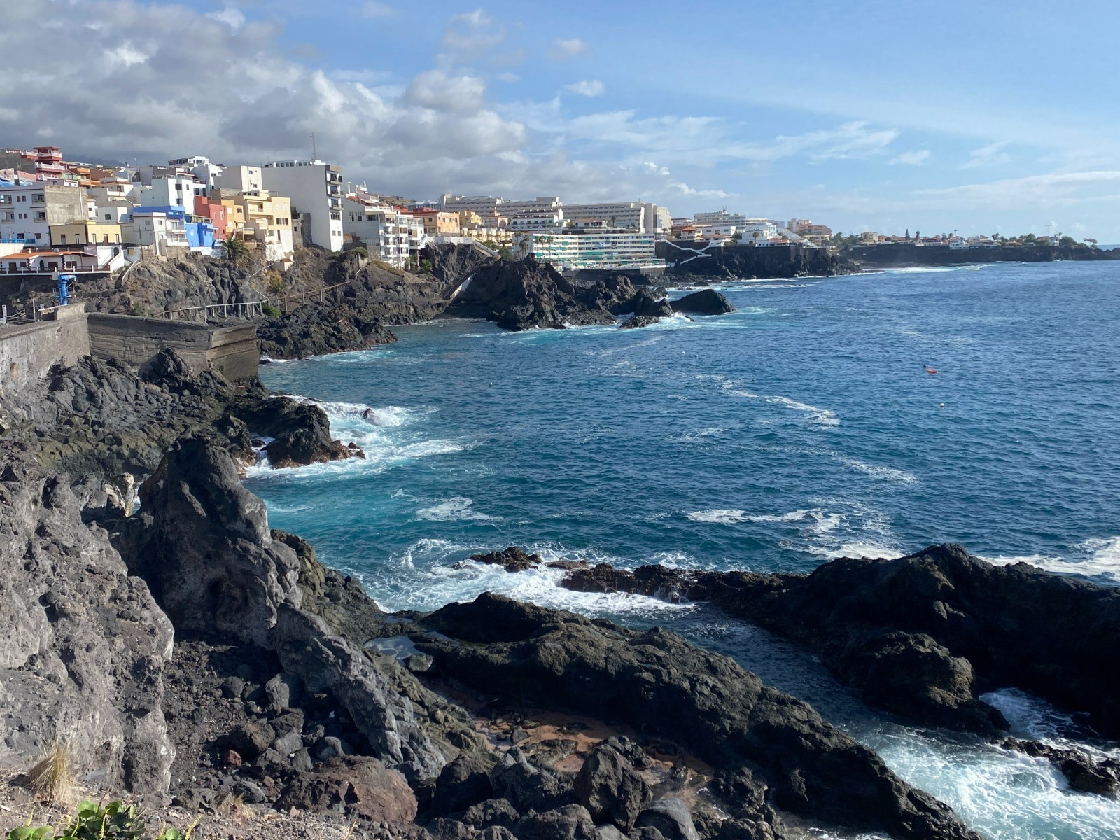 En partant de mon hôtel : découverte de la côte rocheuse avant d'arriver au port de plaisance Marina de Los Gigantes.