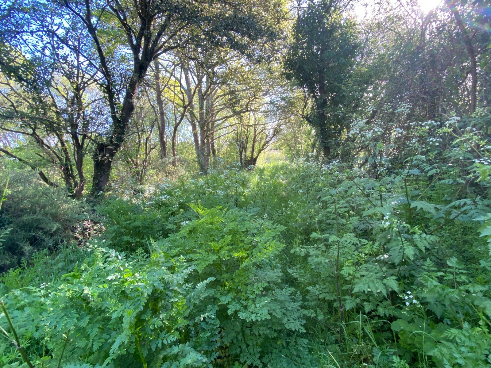 Kilomètre 10 : Un chemin aux hautes herbes où il est difficile de se frayer un chemin ( L'œnanthe safranée : plante herbacée de grande taille - photo no 19 ) mais trop c'est trop ! Je préfère rebrousser chemin à cause de la boue.
