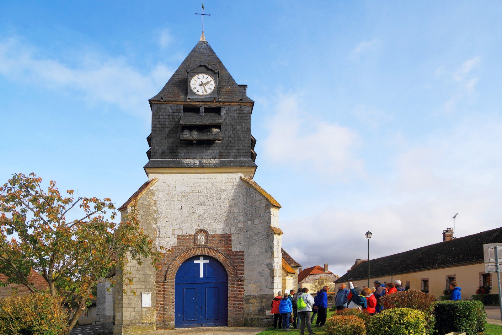 Chemins parfois creusés par les débardages en forêt, bien suivre le tracé après le passage de la ligne à haute tension, la carte n’est pas exacte. Retour aux champs cultivés pour un nouveau point de vue dans la descente, sur un G.R.P. que l’on quitte pour dévier vers Thuisy, ancien village maintenant rattaché à Estissac. Quelques détours par les chemins et les petites rues, pour éviter la rue circulante, mènent alors à la mairie tout près de l’arrivée.