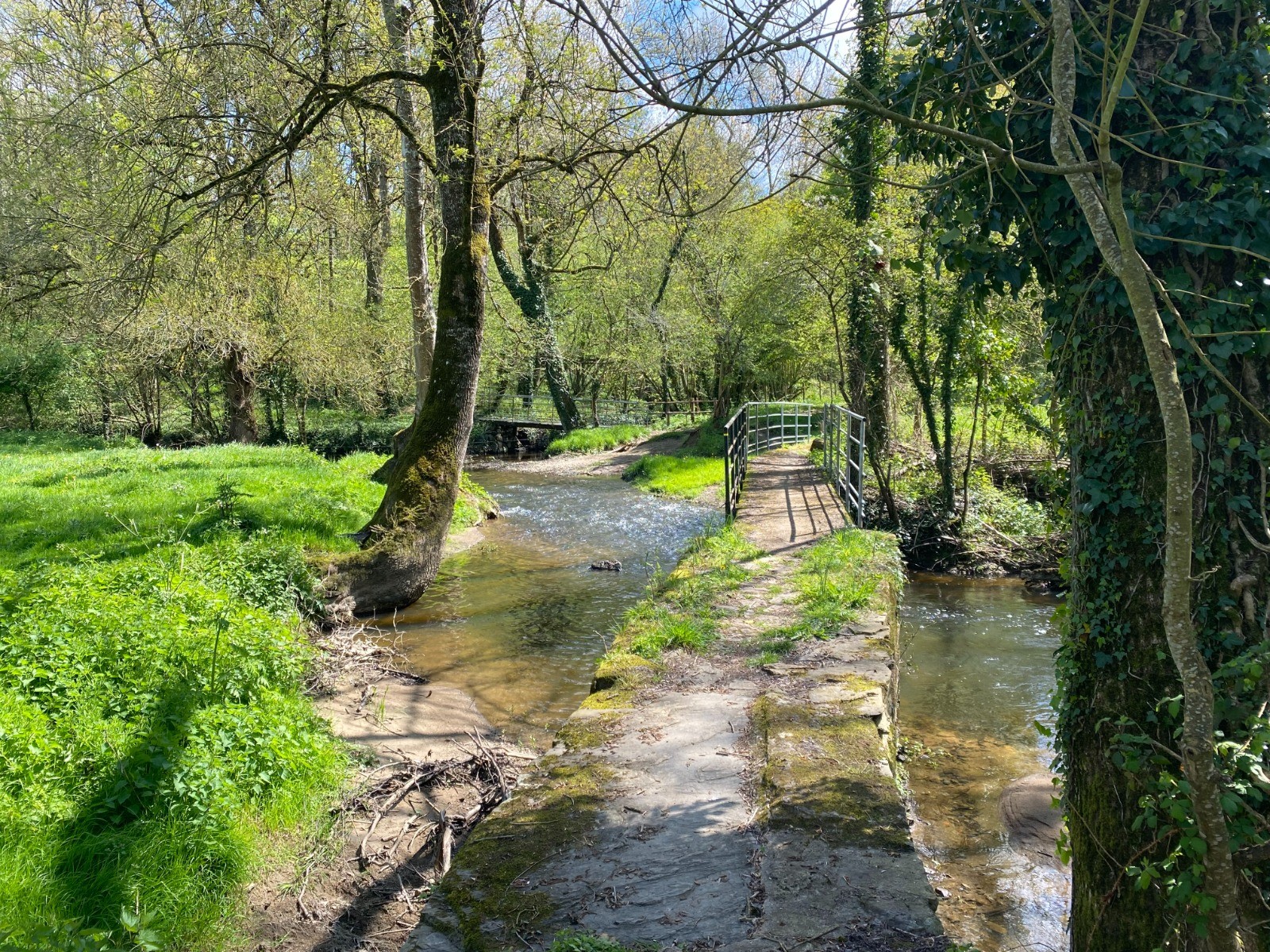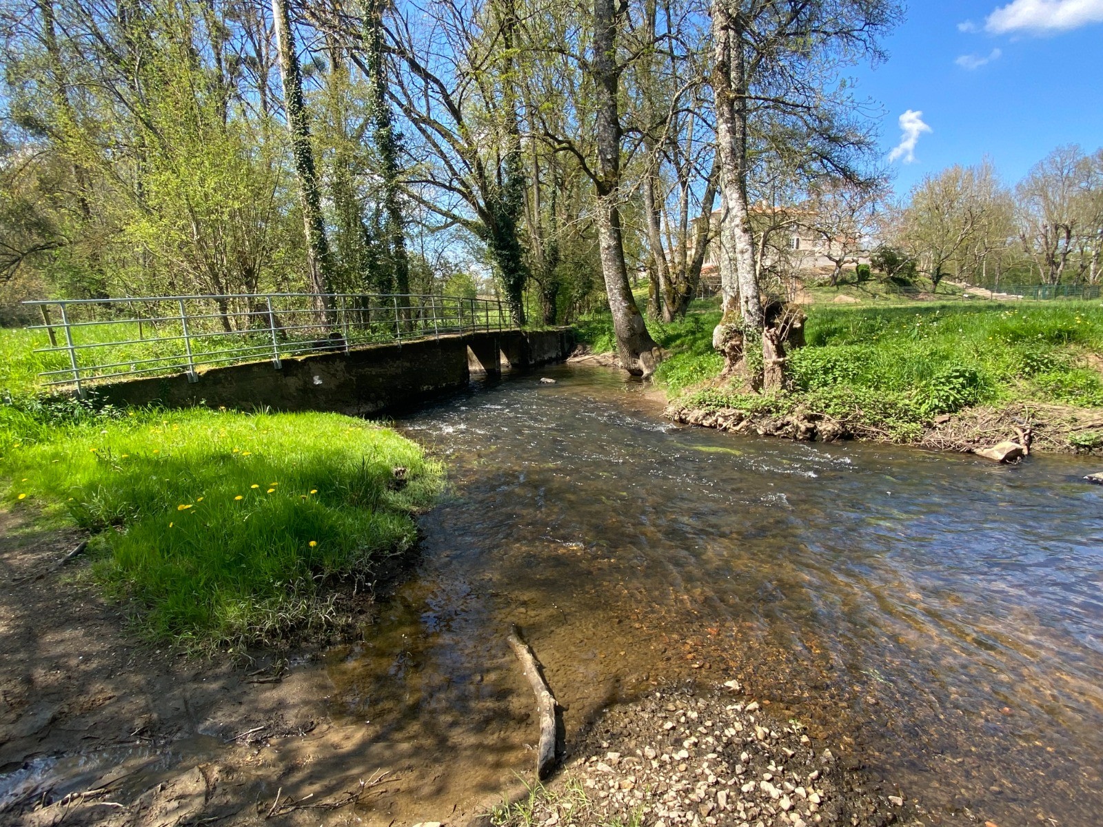 En attendant, on chemine de vignes en hameaux, on découvre un ancien moulin, on traverse la rivière au niveau d'un petit sous-bois et, juste avant l'arrivée au pont, on découvre une fontaine.