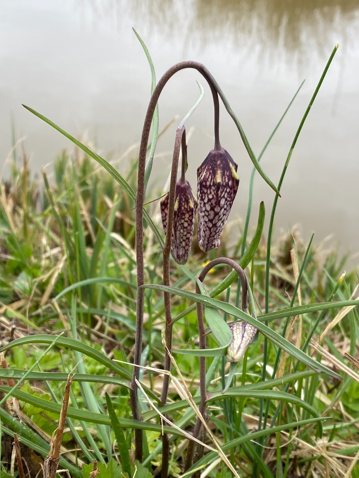 "La fritillaire pintade ou oeuf de vanneaux ( fritillaria meleagris) est facile à reconnaître avec ses gracieuses clochettes et ses corolles pourpres.