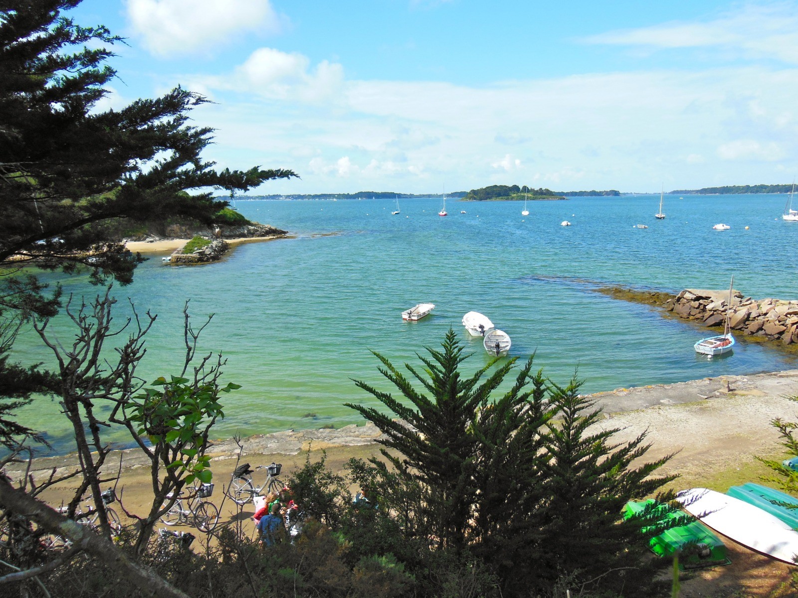 Depuis l'embarcadère, l'itinéraire dévoile progressivement la douceur et la variété des paysages insulaires. On y croise notamment :- le dolmen de Kerno