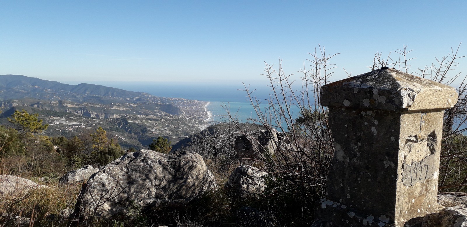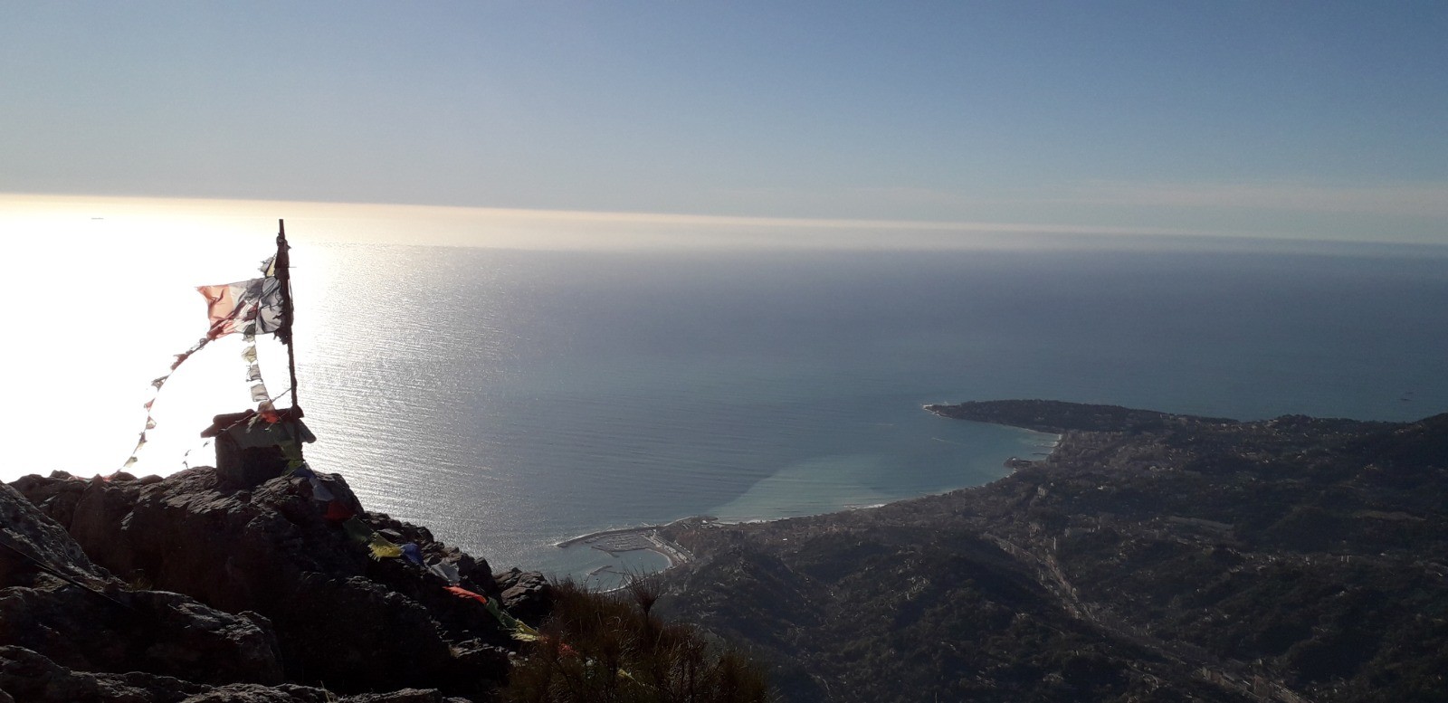 Circuit en boucle au départ du village de Castellar avec un sublime point de vue sur la Riviera depuis le Roc d'Orméa qui surplombe Menton et poursuite parcours jusqu'au sommet franco-italien du Mont Carpano. Magnifiques belvédères sur le littoral.