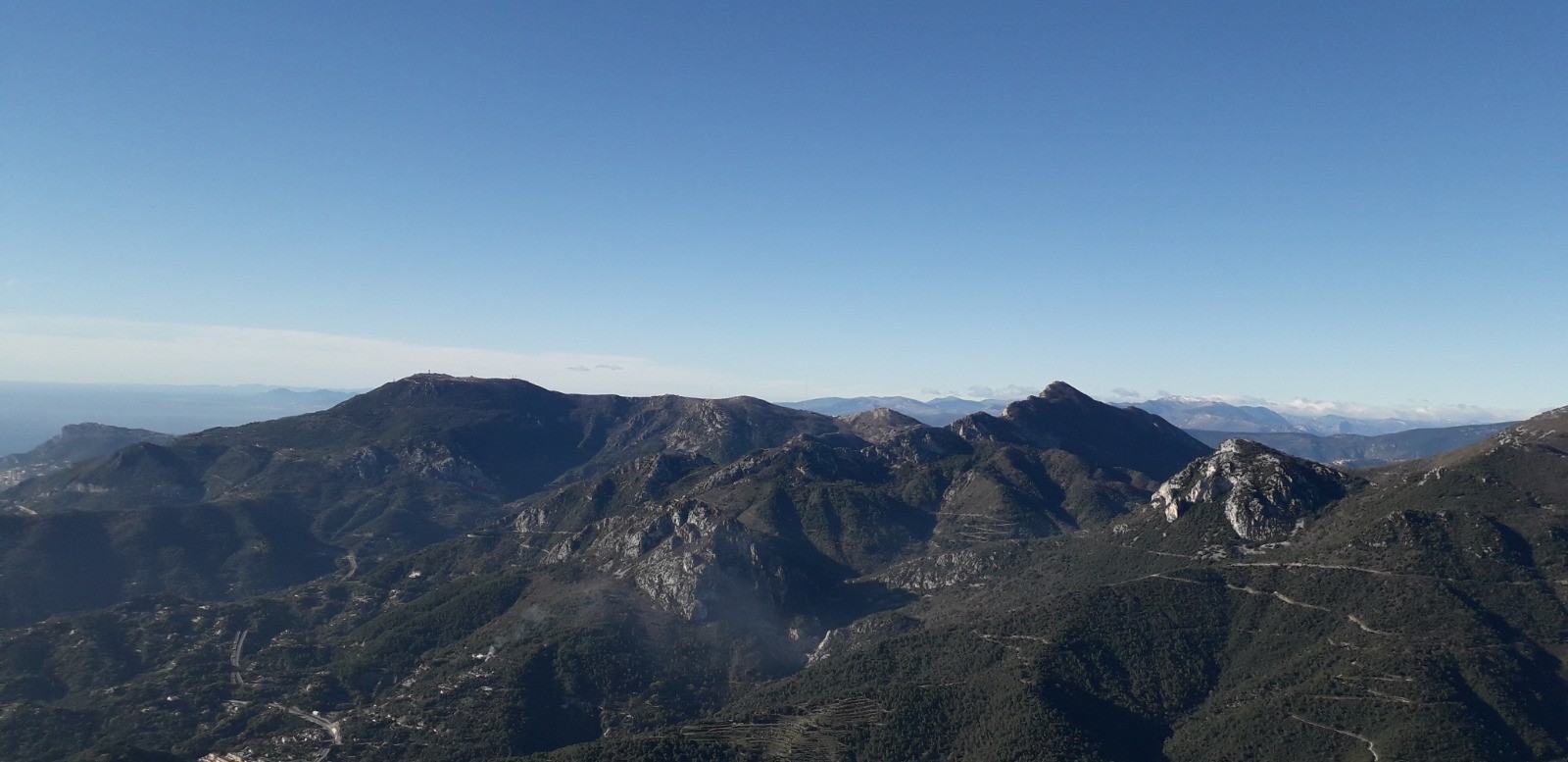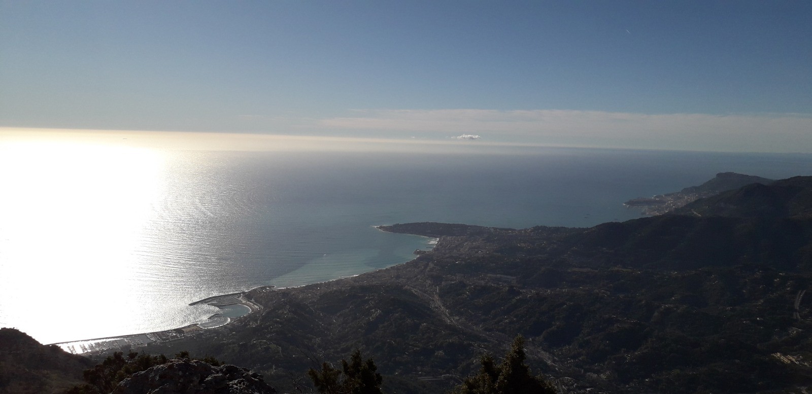 Superbe rando accomplie le 14/12/19 au départ du parking de Castellar (Chapelle St-Sébastien) avec sommets successifs du Roc d'Orméa et du Mont Carpano sur frontière franco-italienne. Points remarquables sur l'itinéraire : La chapelle St Bernard, le plateau de Mourga, les ruines du Vieux Castellar, le Plan du Lion et bien évidemment le Roc d'Orméa qui constitue le clou de cette balade. Son approche depuis le col du Berceau, en surplomb de Menton est splendide mais le piton rocheux est de toute beauté. ll surclasse le mont Carpano en offrant une vue sublime sur la Riviera. Magnifique panorama à nul autre pareil pour l'ensemble des massifs avoisinants. A noter que la descente du Mont Carpano jusqu'à la balise 413 est malaisée sur un chemin bien tracé mais avec une pente accentuée sans difficulté.En conclusion : rando vivement recommandée ! Vue sommitale époustouflante !