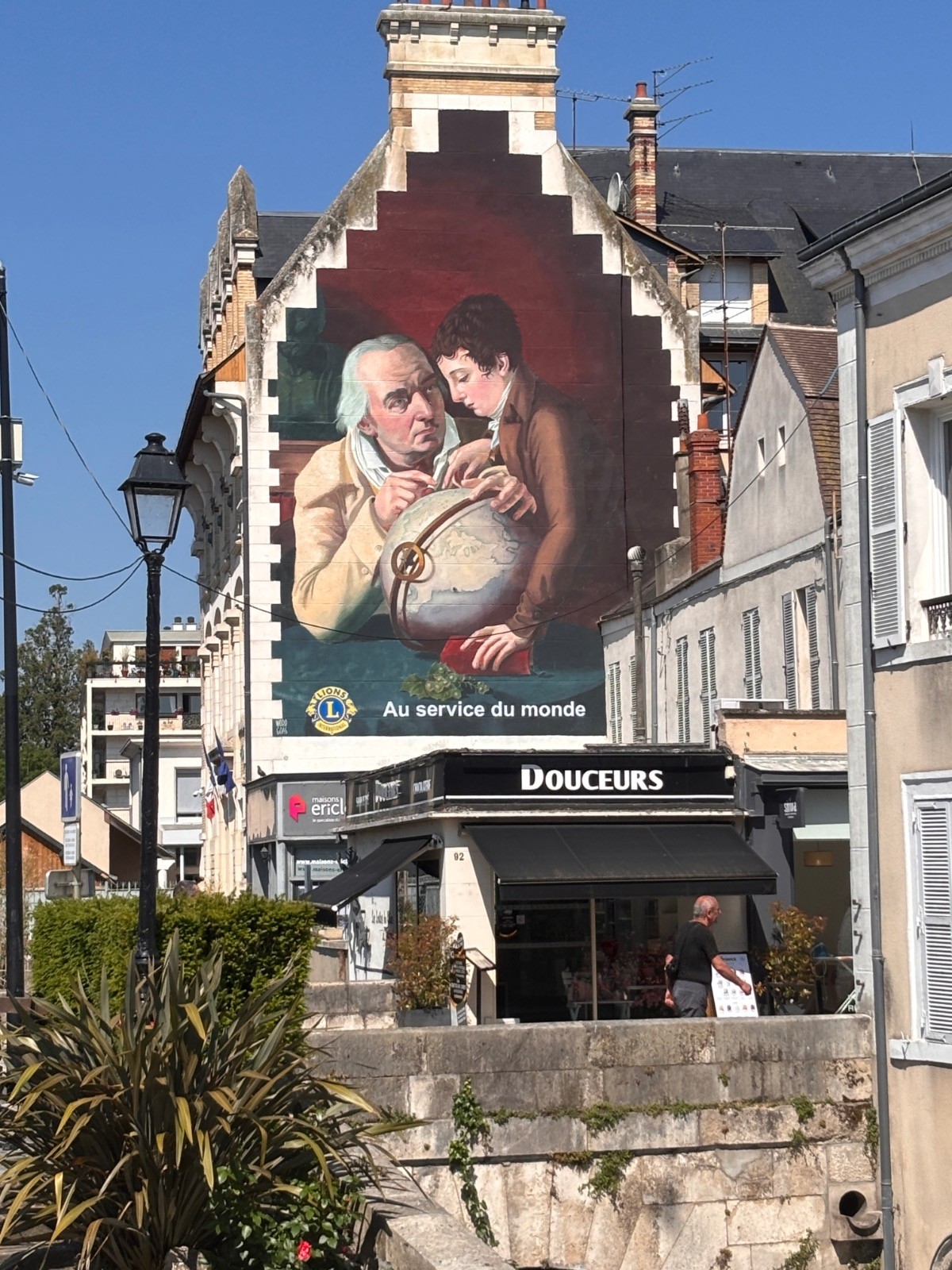 Pour la Place de la République et rejoindre en face la Ruelle Pinon. Déboucher Boulevard des Belles Manières, longer la rivière à gauche jusqu'au rond-point de la Place Victor Hugo. Reproduction du tableau du peintre Girodet, La leçon de géographie. (Boutique des Crottes de Chien de Montargis)