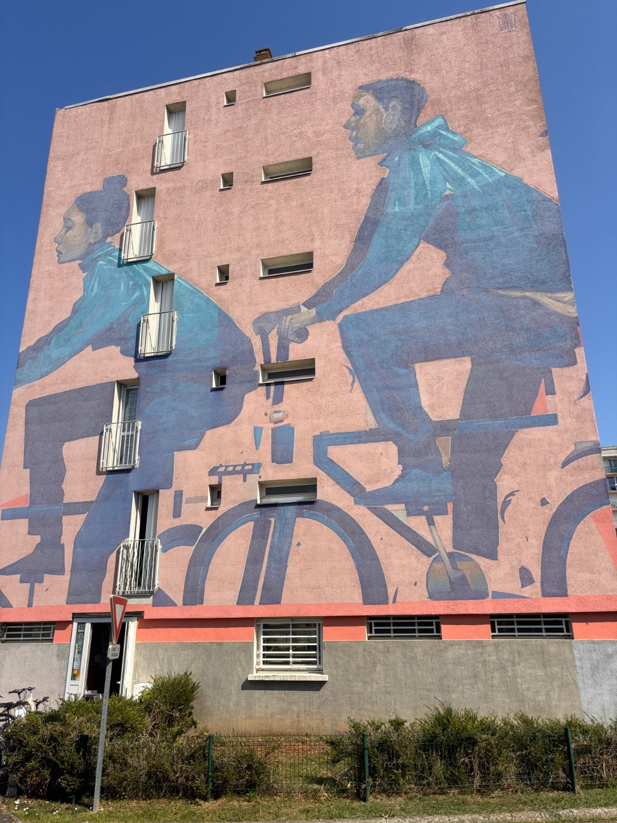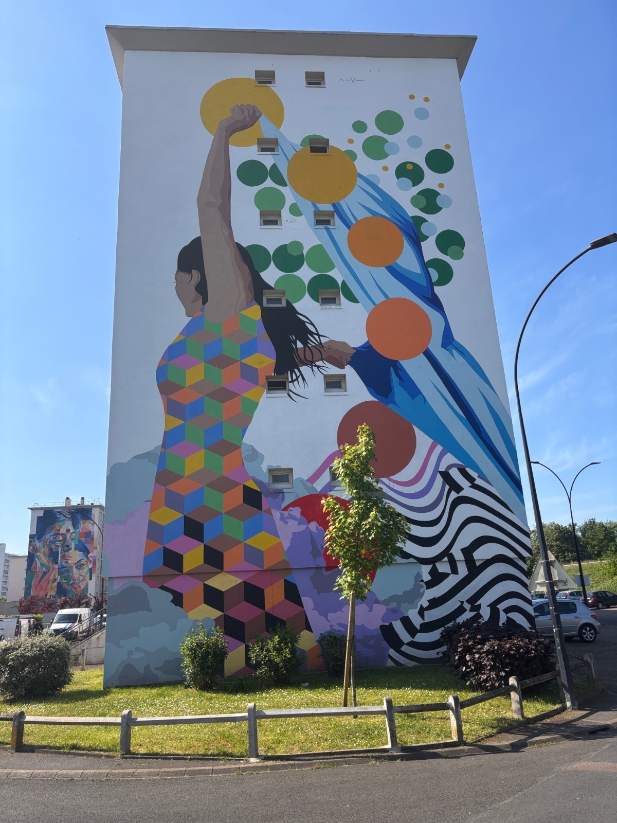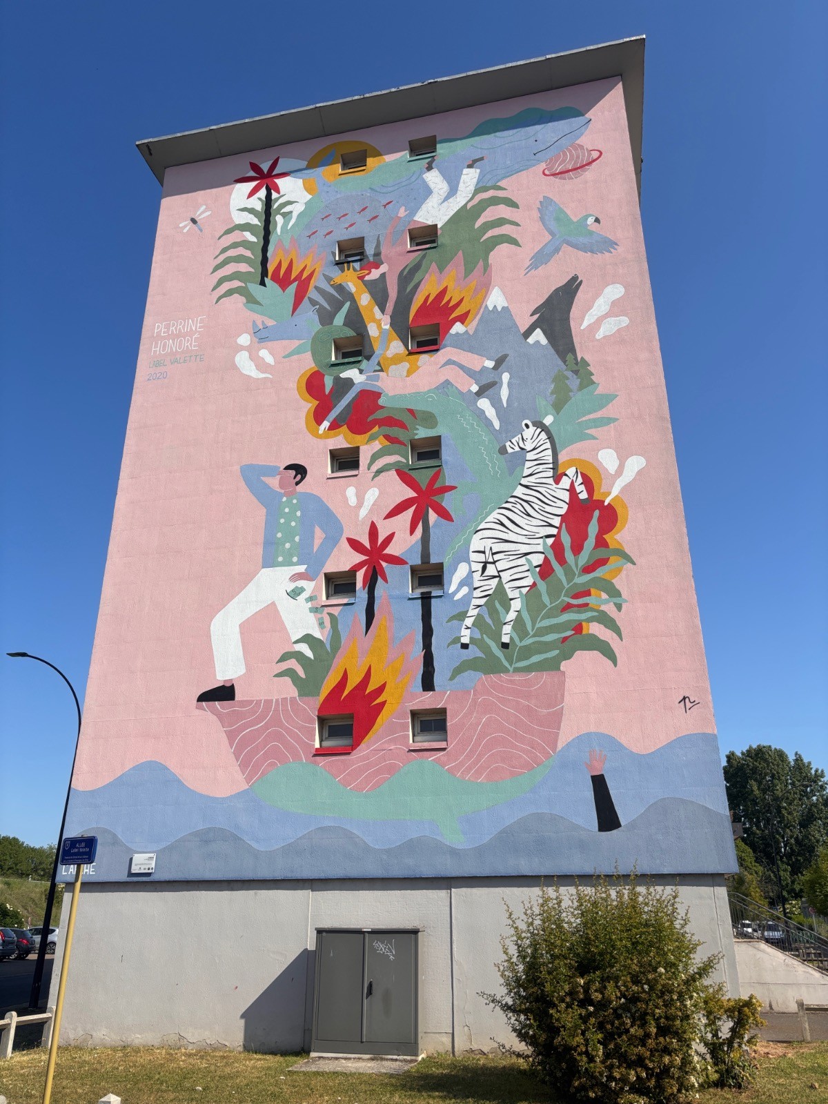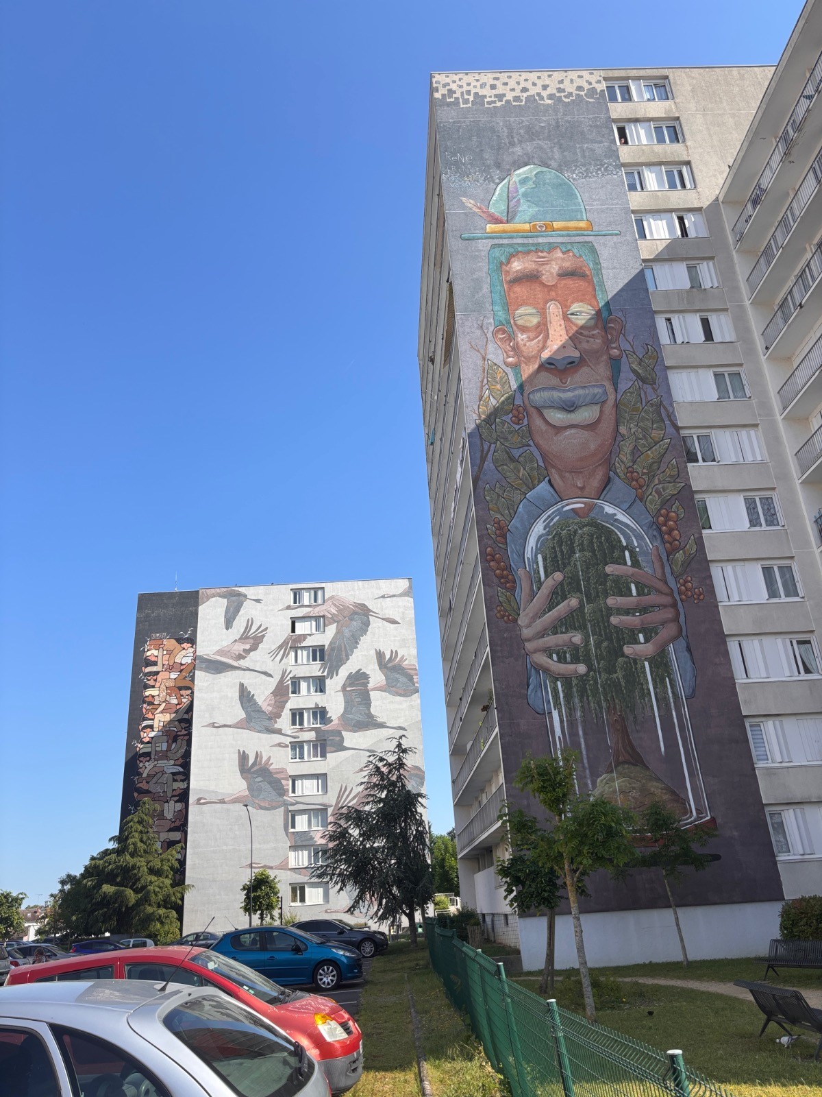 Continuer jusqu'à l'Allée Roger Girardy ensuite, à gauche, et aboutir Rue du Grand Clos : fresque Passé pour être présent dans ton futur. Se diriger à gauche puis aussitôt à droite, pour traverser et prendre à gauche la Rue d'Alsace-Lorraine, puis à droite l'Allée Offenbach jusqu'à son extrémité : fresque Jungle urbaine. Emprunter à gauche l'Allée des Tourelles, puis encore à gauche l'Allée Eric Joseph.