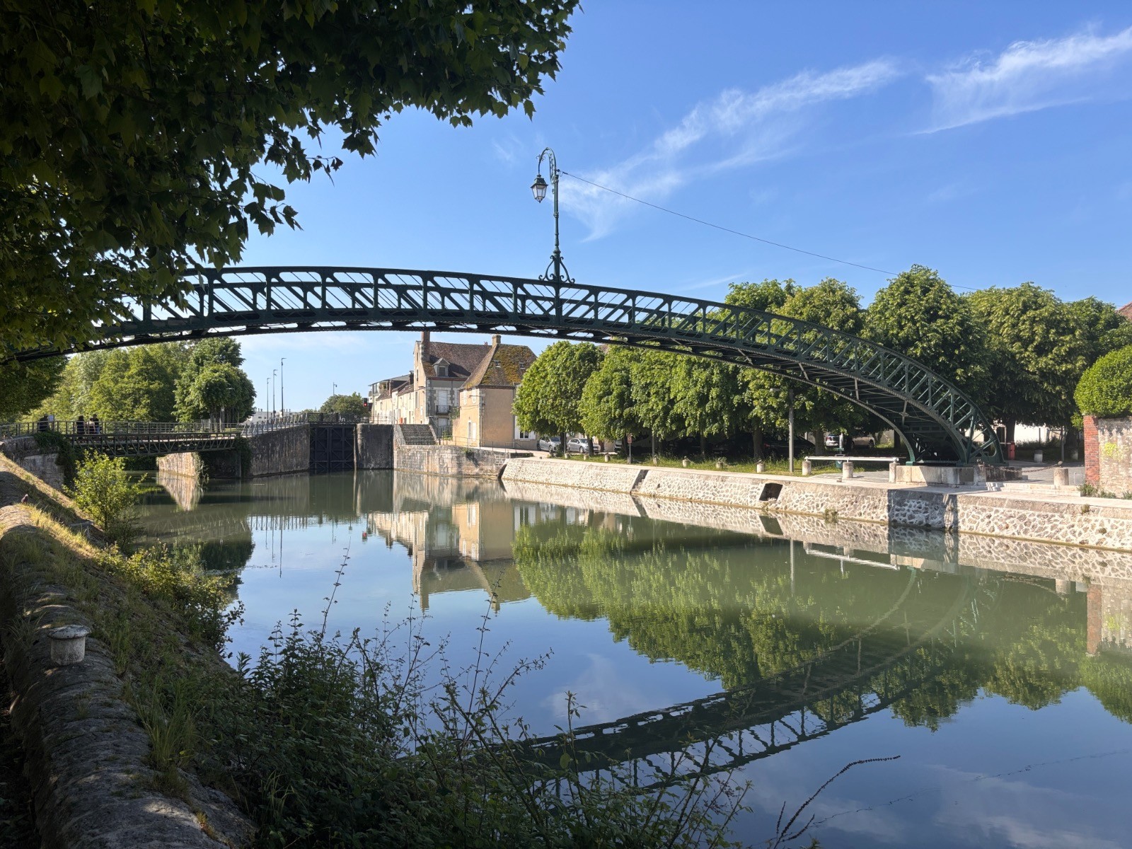 Poursuivre à droite, passer devant la Piscine du Lac puis l'aire de jeux. Fresque sur armoire électrique au niveau du passage souterrain. Emprunter à gauche l'Allée Anne d'Este par les différentes passerelles, arriver Boulevard Durzy. Longer le Canal de Briare à droite. À l'Écluse de la Reinette, prendre le pont et en face la Rue Raymond Tellier puis la Rue de la Pêcherie à gauche. Emprunter le passage à gauche au niveau du n°15 pour déboucher Rue de l'Ancien Palais. Fresque sur transformateur, Le bouton d'or. Continuer à gauche puis à droite Rue Raymond Laforge.