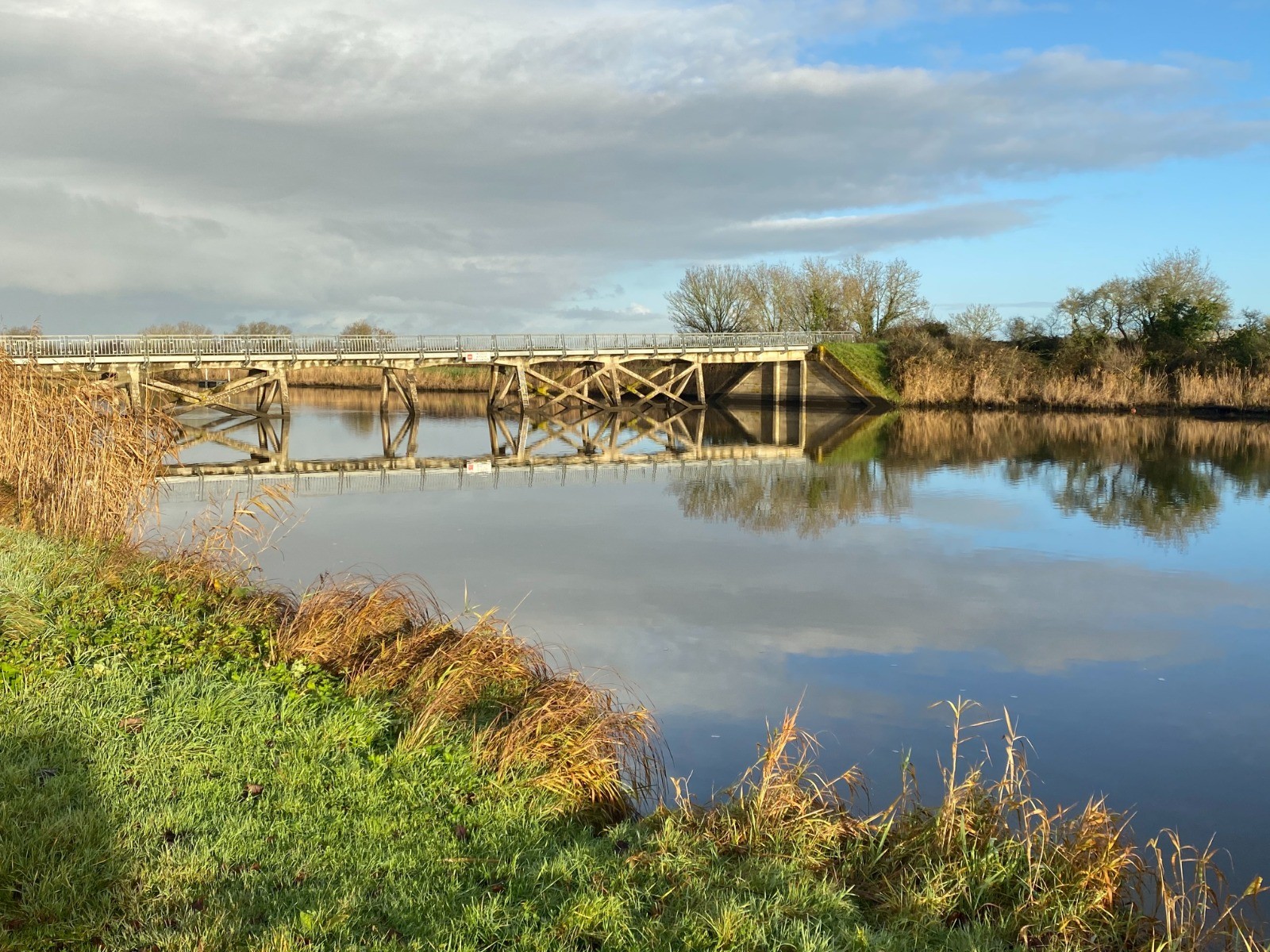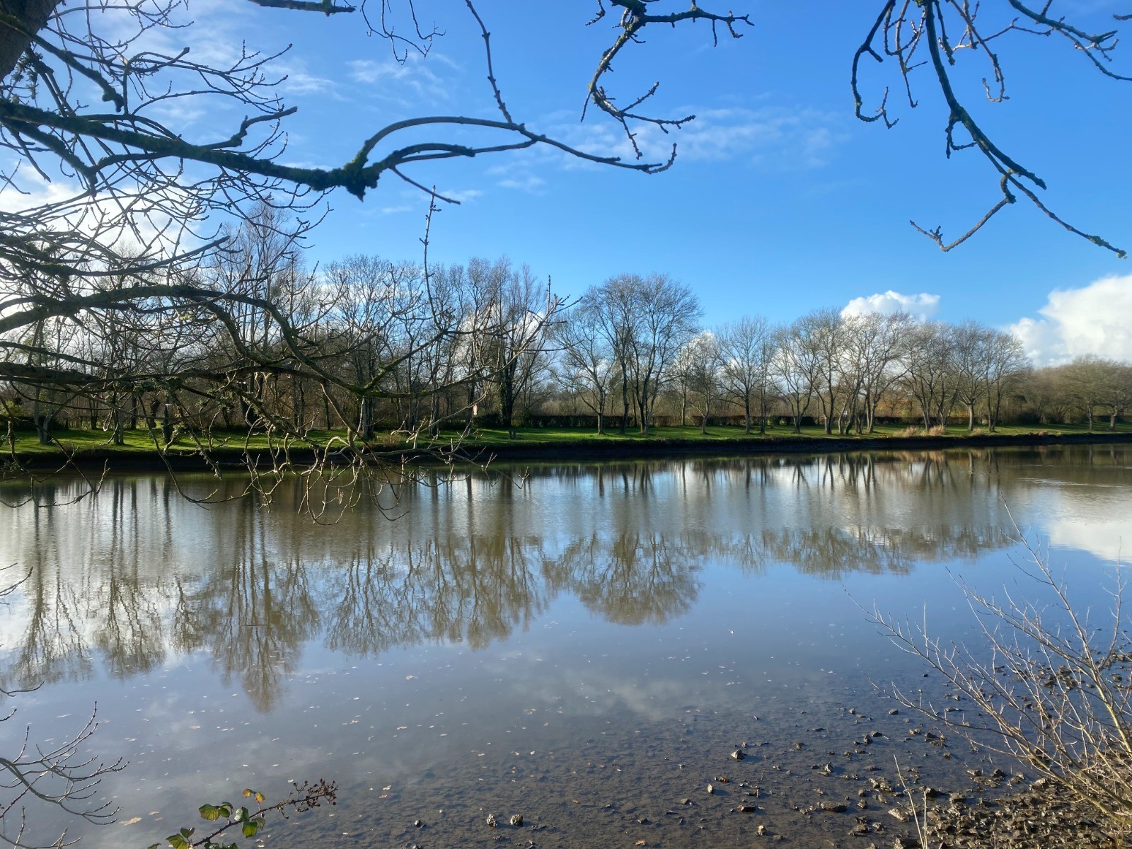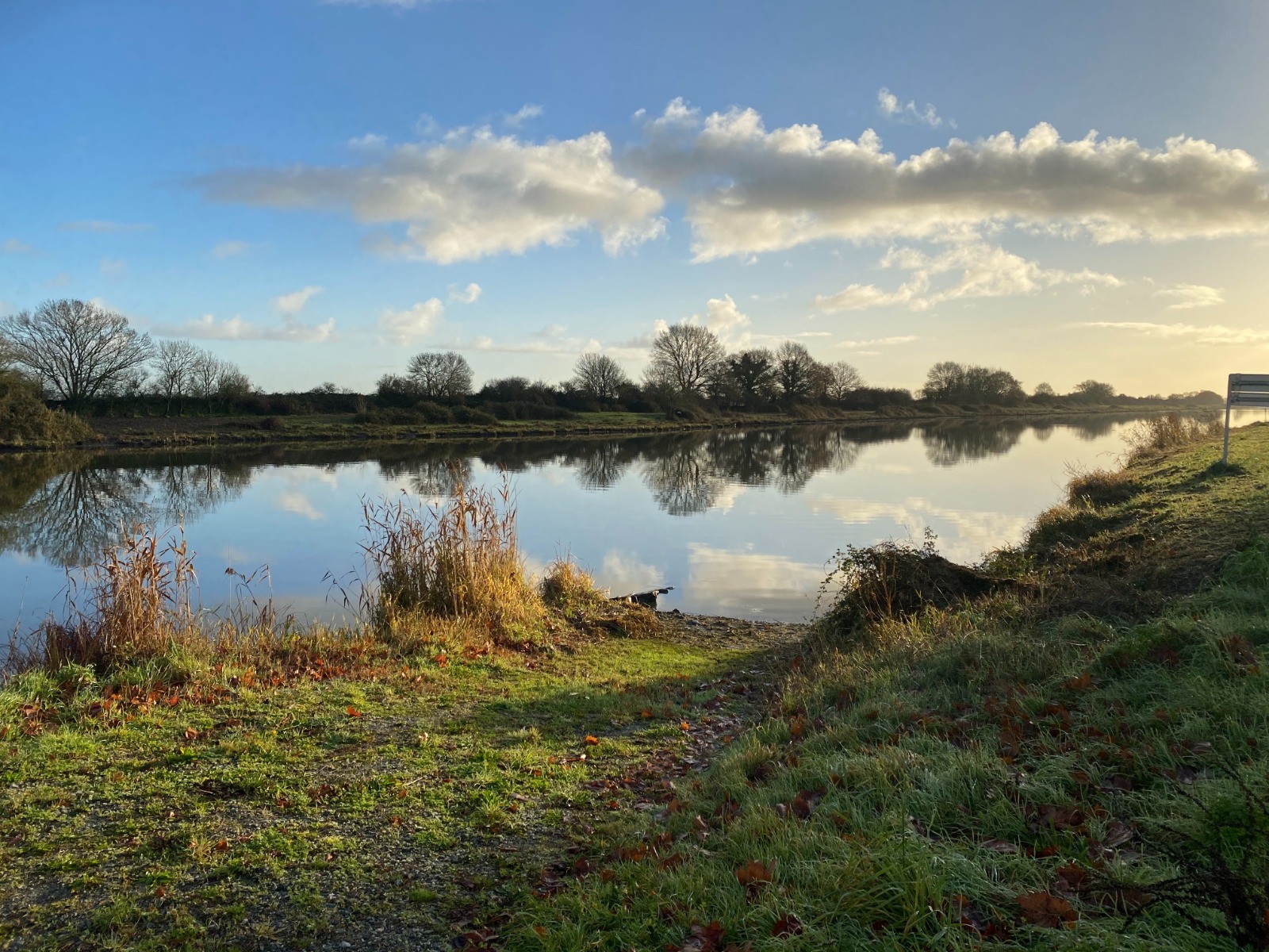 Le retour se fait le long du canal par un chemin bien boueux en cette saison.