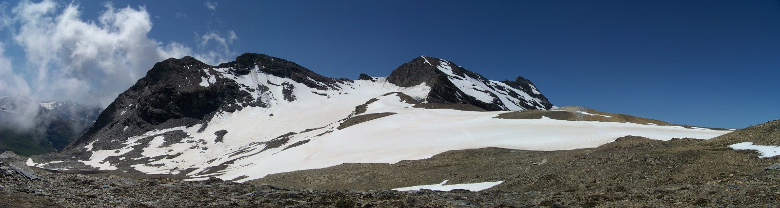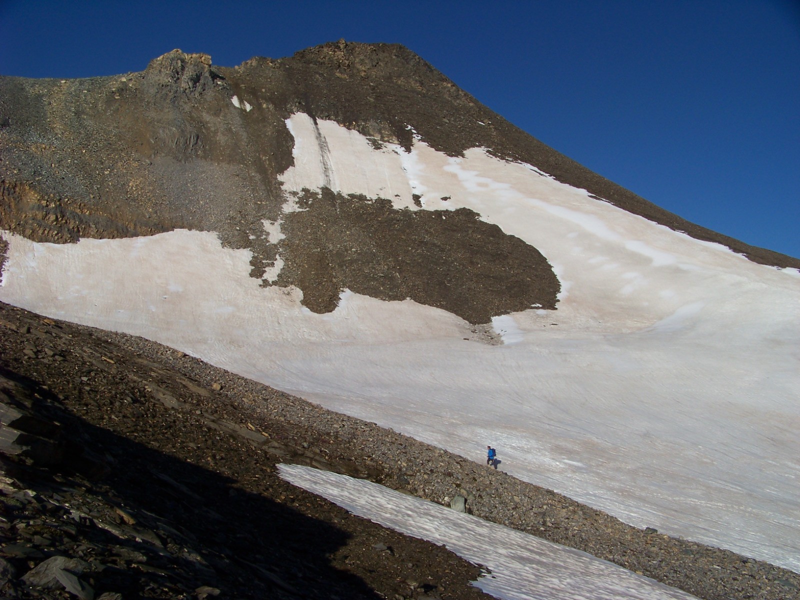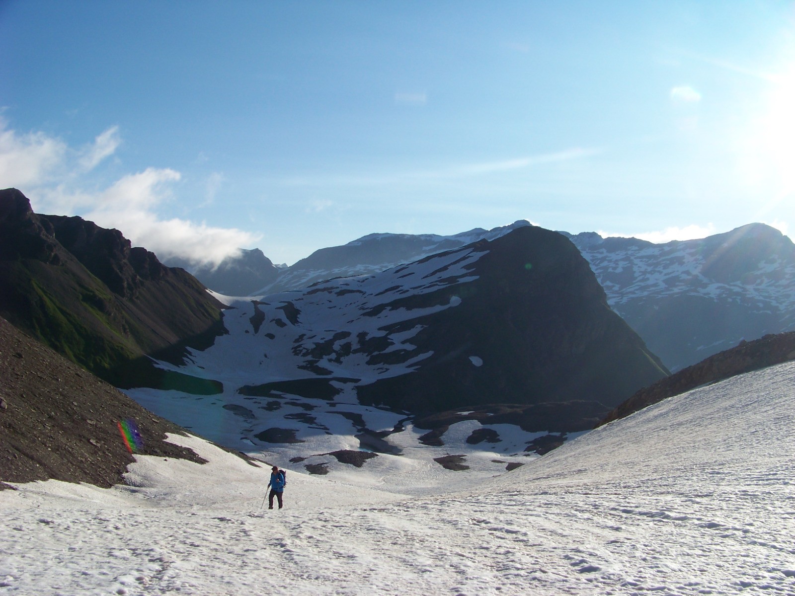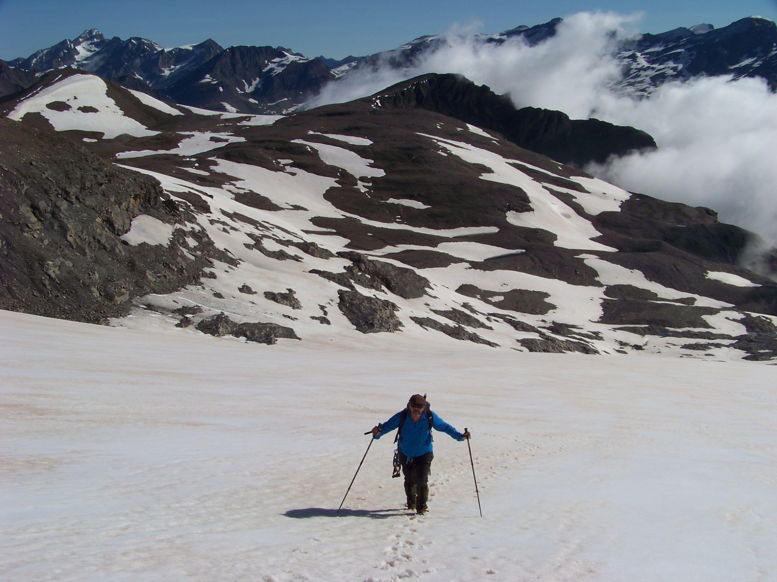 Le glacier est facile peu ou pas crevassé avec le recul important de ces dernières années.
