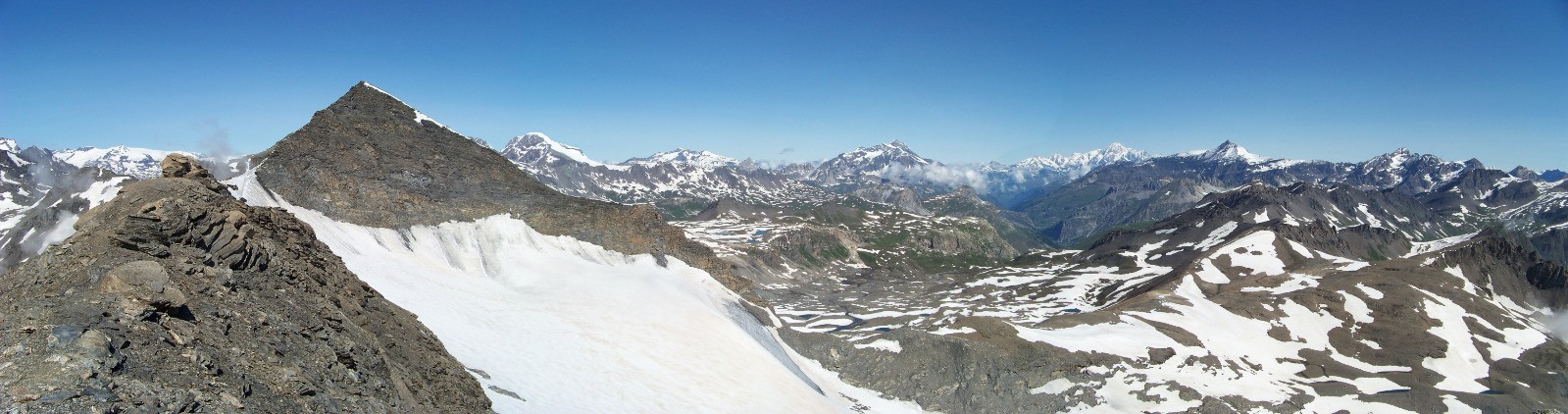 Viser alors le pied de l'arête N de la pointe de Buffette, passage plis raide en neige ou schiste, puis remonter cette arête très facile jusqu?au sommet.
