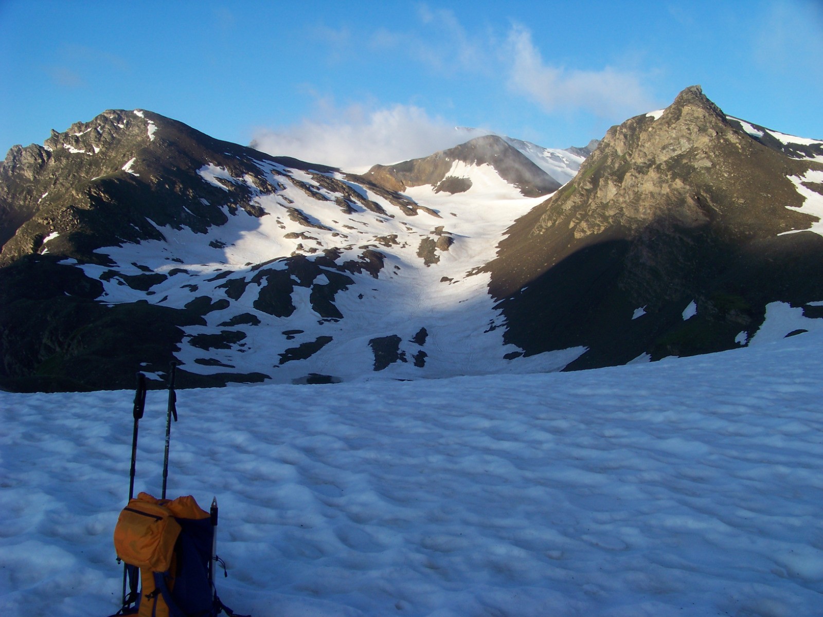 De chacun de ces cols, une descente à aller de 80m, puis environs 100m permettent de passer d'un vallon à l'autre puis au glacier. Ils sont à remonter au retour!