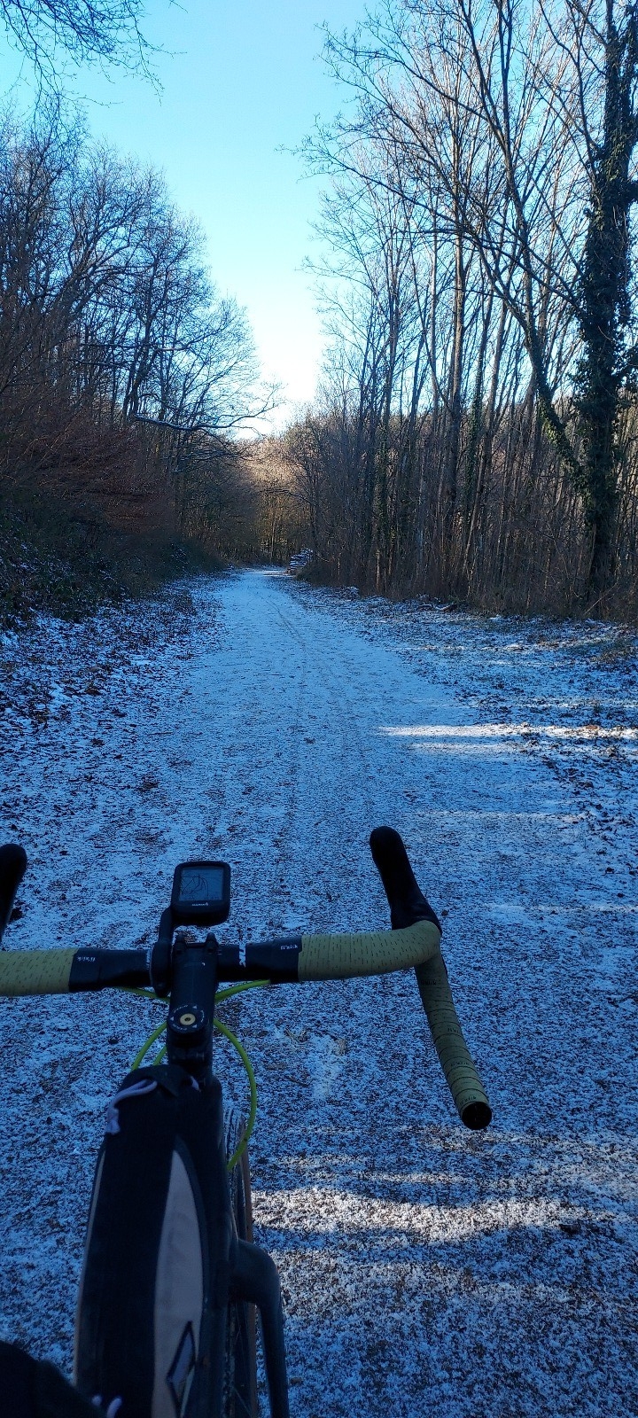Passé l'autoroute, on arrive au chemin de la station, une des plus belles pistes gravel du coin, revêtement sableux hyper roulant au milieu des bois qui nous fait descendre jusqu'à la gare de Dommartin-Lissieu. De là on amorce le retour à Lyon par le chemin des Plasses, une longue piste forestière qui nous amènera à l'autoroute et par le chemin de la Poyat on arrivera au fort du Payet. Passé les petits sentier contournant le fort un peu de route nous attend mais on va vite arriver jusqu'aux chemins des Saules et du Jubin pour contourner Dardilly.