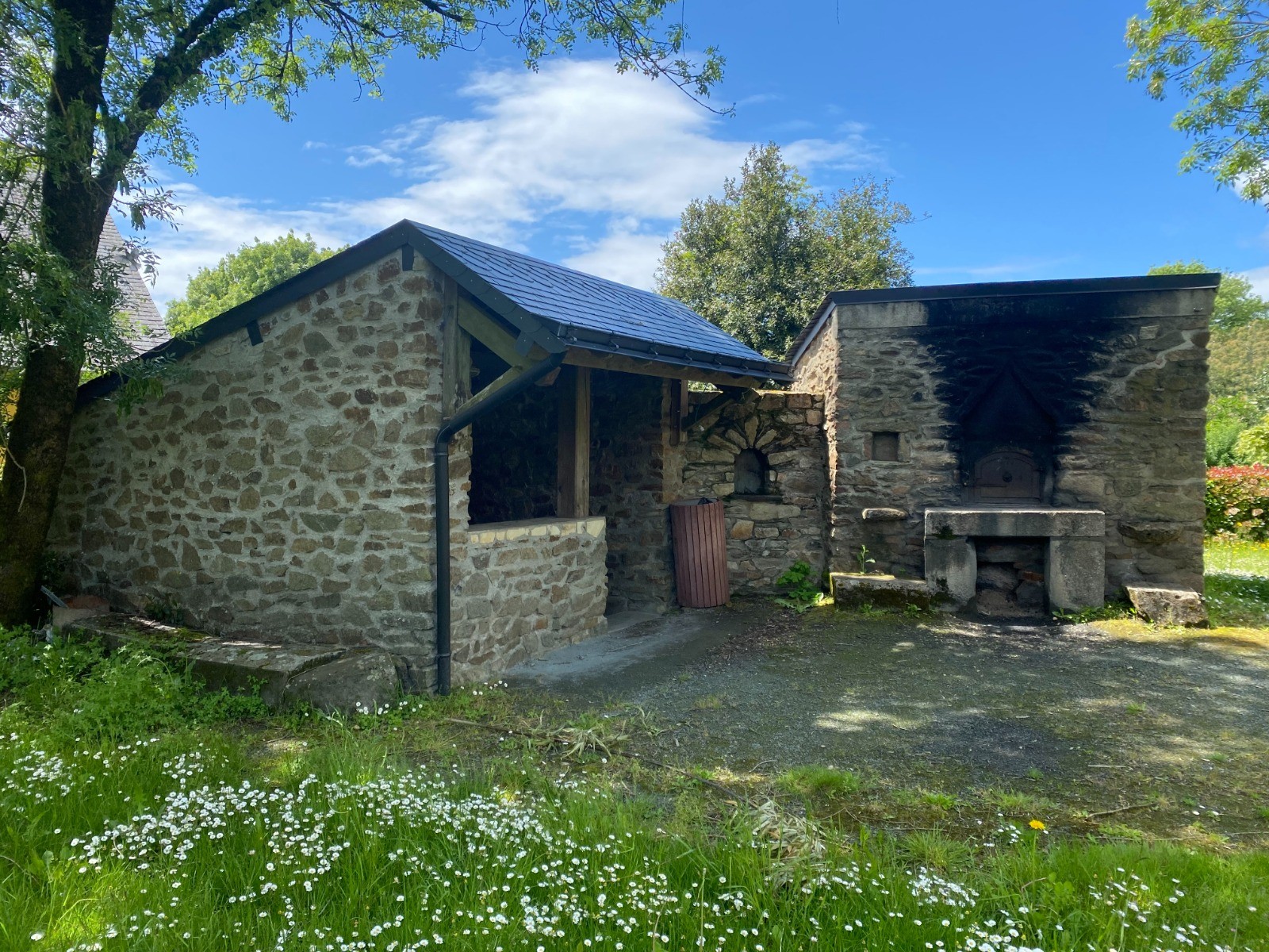 Un four en bordure de la route départementale et au centre du bourg avec un espace de pique-nique à proximité.