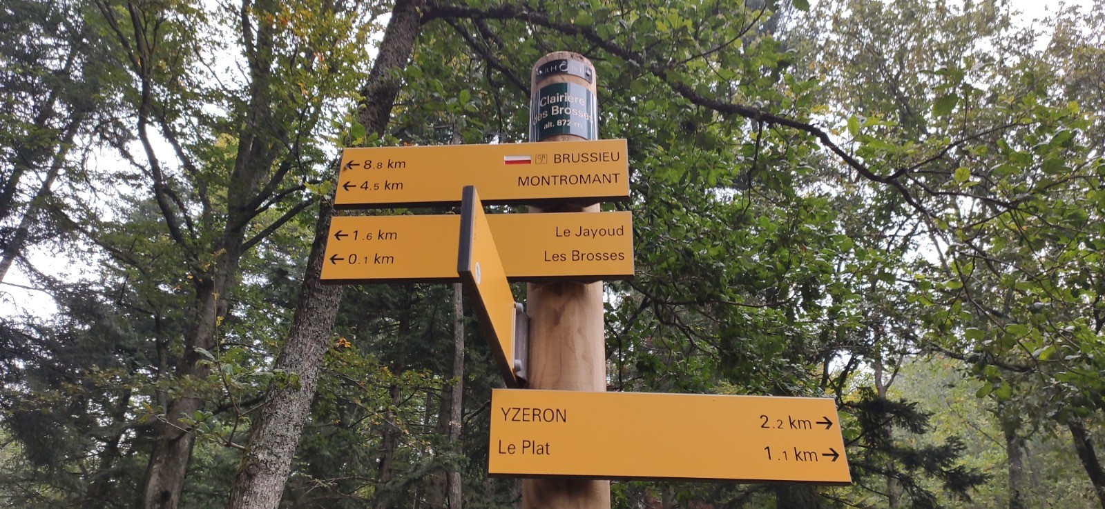 De Vaugneray, l'itinéraire pique au Sud, traverse l'Yzeron pour passer coté Garon via Gouttes Noires, le Plat de Saint-Romain et le Jaricot.