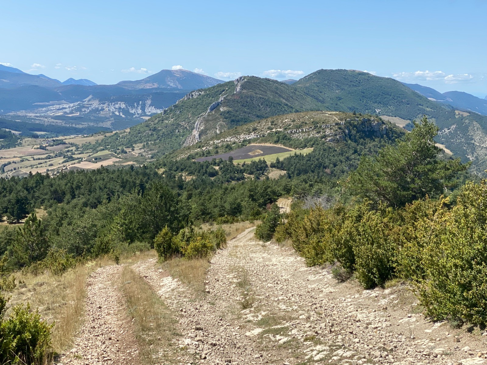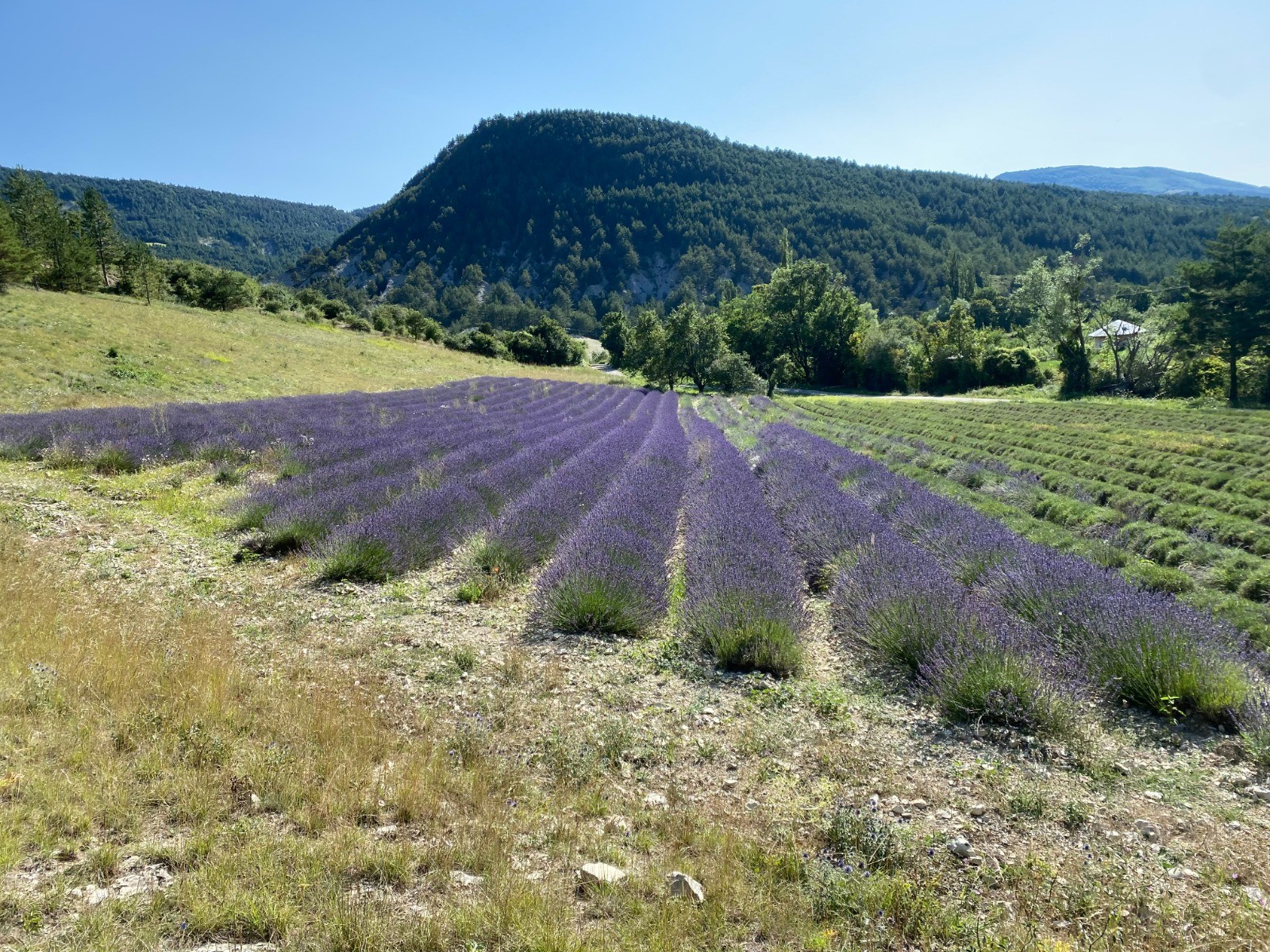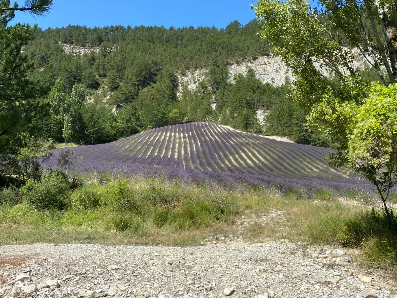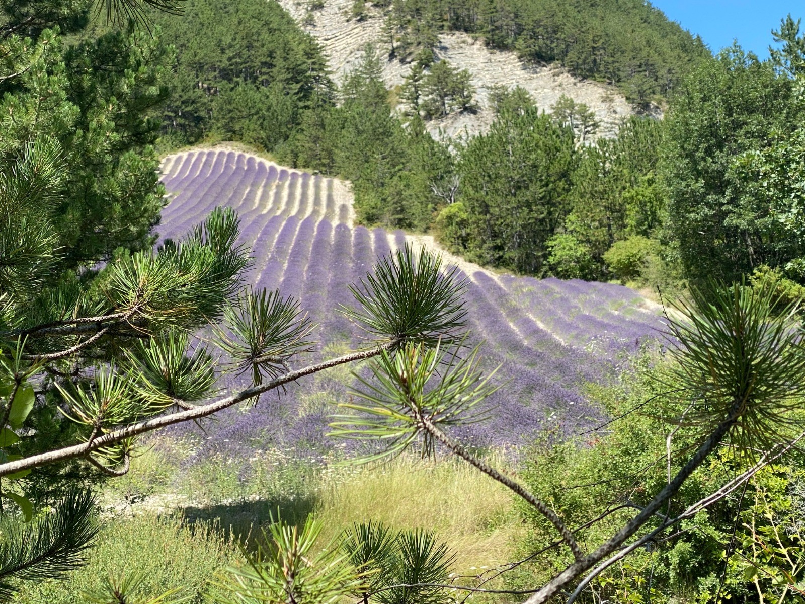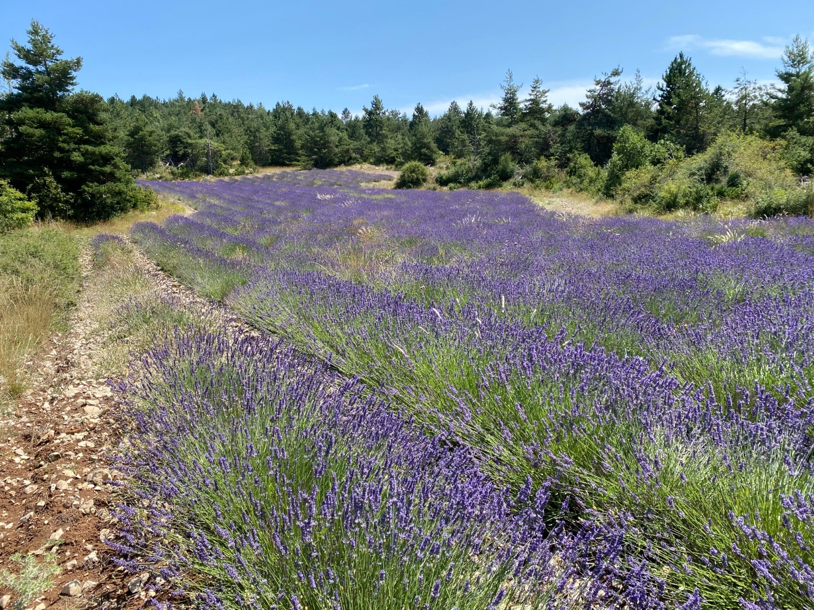C'est sur des chemins agricoles longeant des champs de lavande que je me dirige vers le « Col de la Trappe »