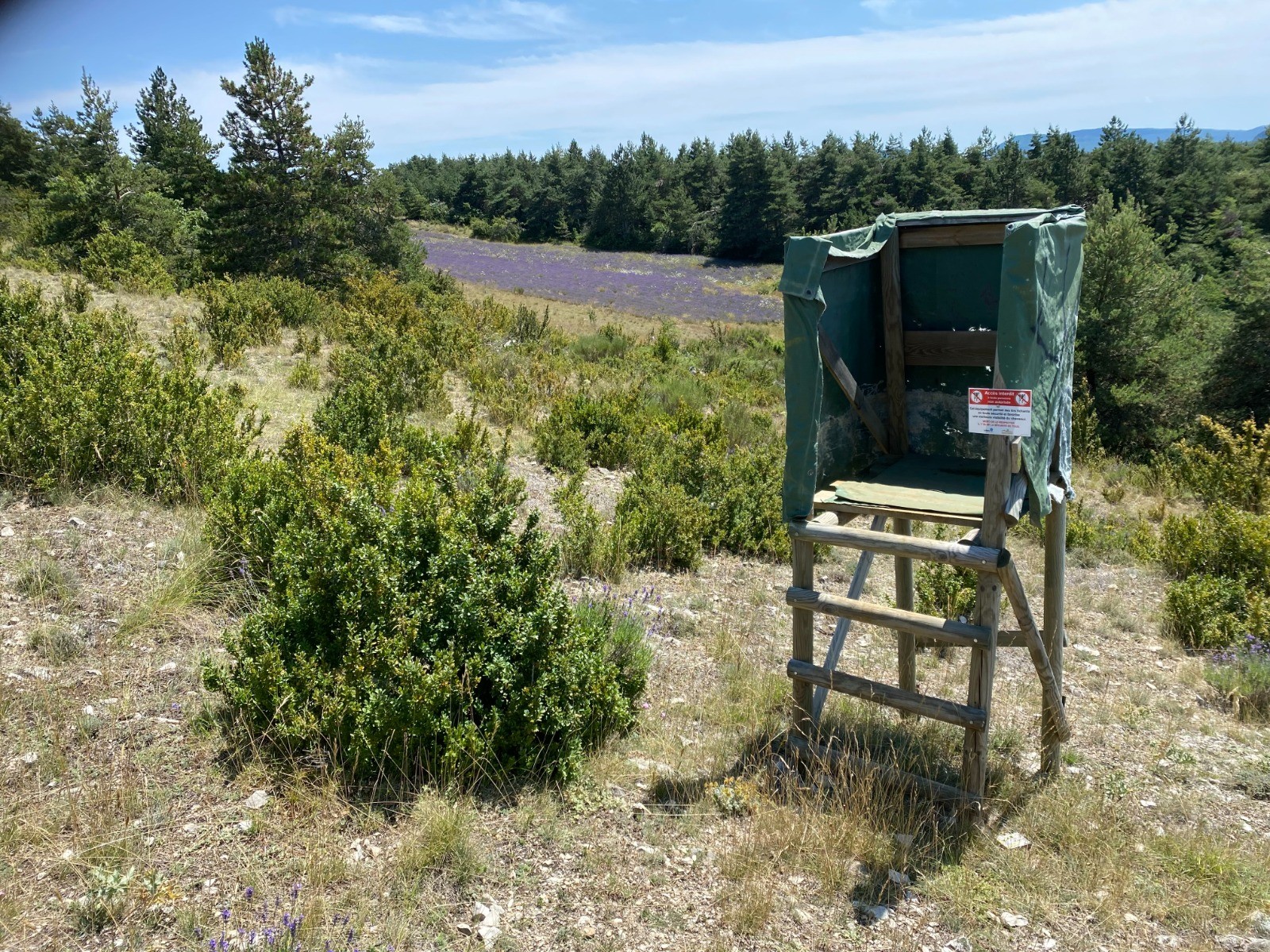Les chasseurs ont installé des miradors. Il est vrai que la région est envahie par les sangliers et chevreuils.