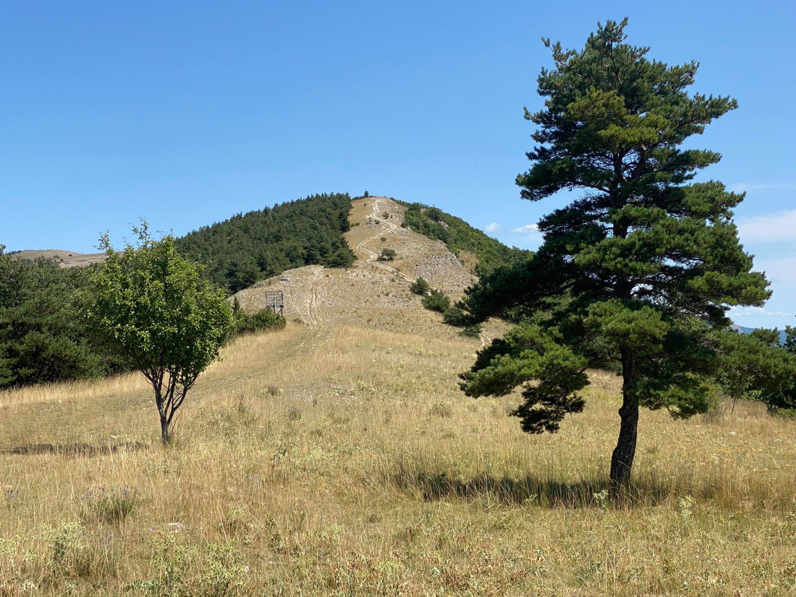 Après ce col la pente devient une belle piste en crête, sur des pelouses servant de pâturages à moutons.