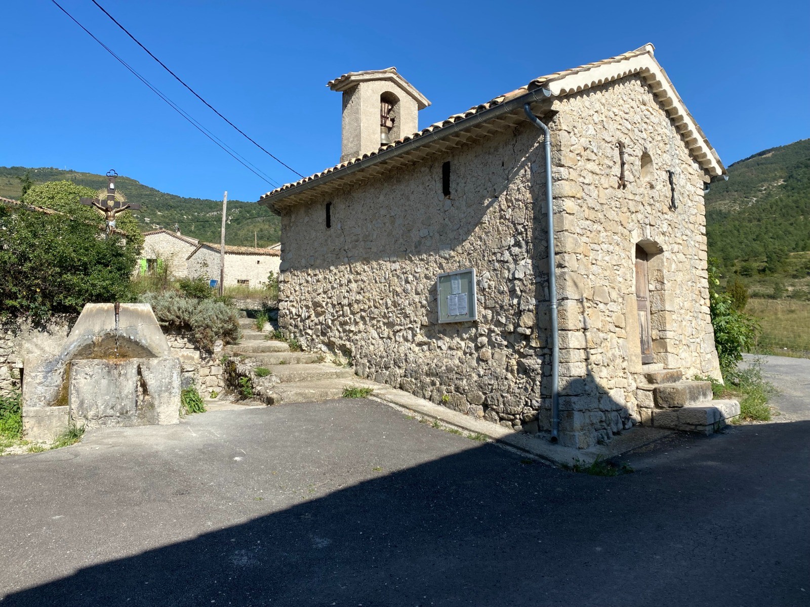 Le départ a lieu à côté de la fontaine lavoir et de la magnifique chapelle St Pierre.