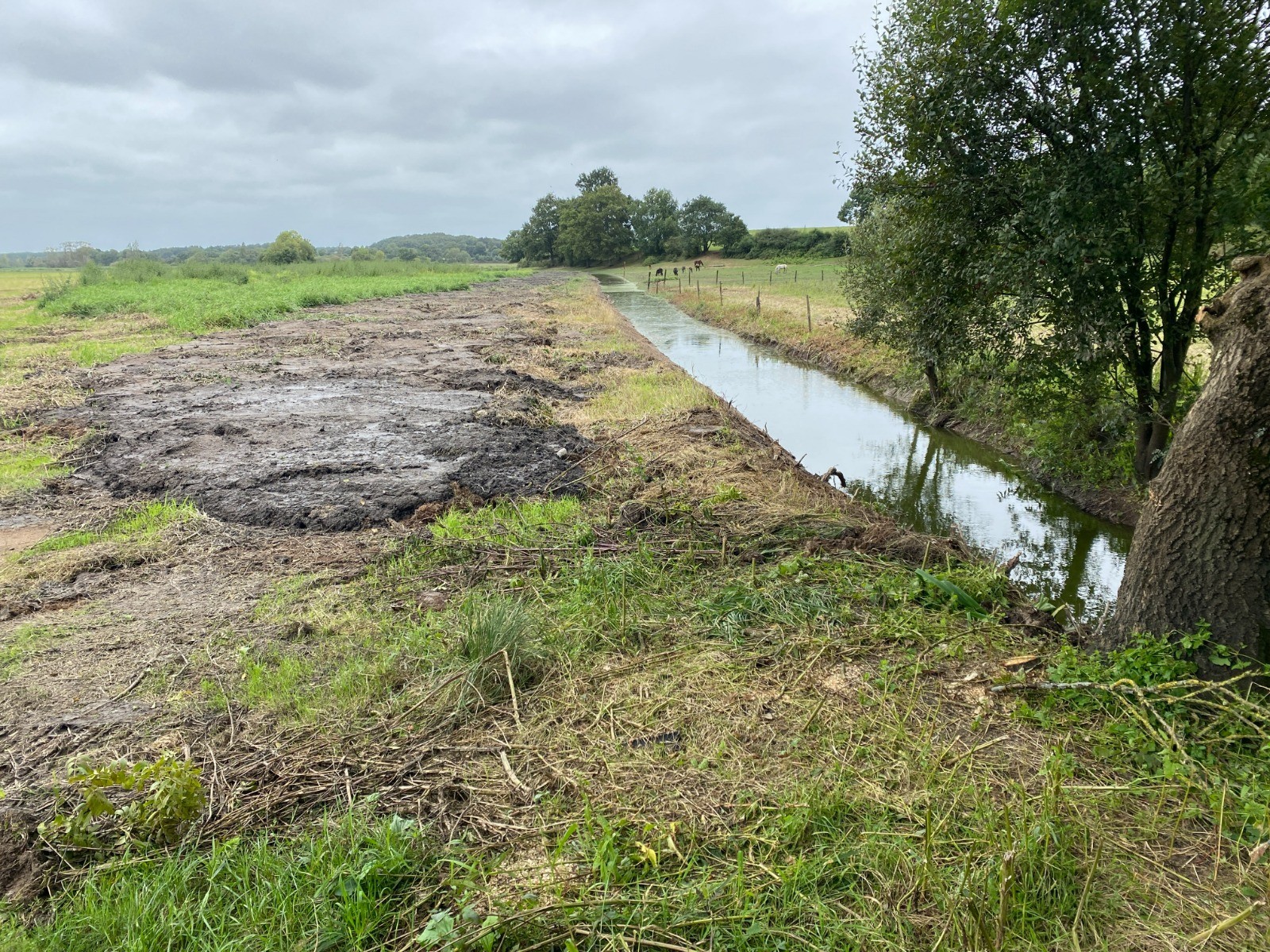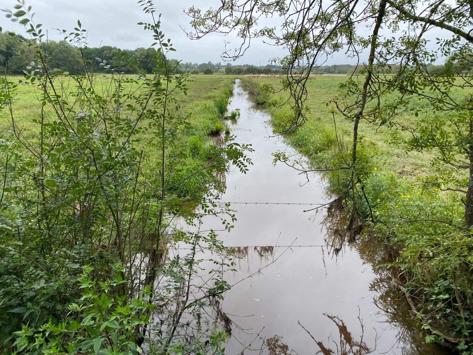 Nous suivons ensuite l’Acheneau sur plus de trois kilomètres, à travers un paysage où les marais, habituellement inondés, ont laissé place à de vastes prairies.