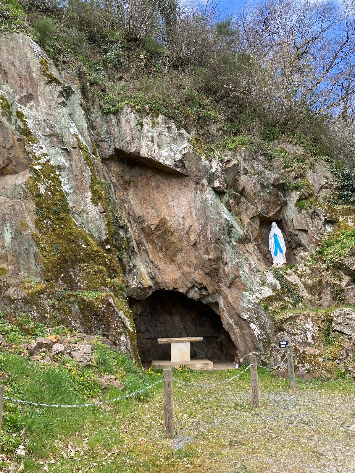 Depuis le port nous sommes également sur un des chemins de Compostelle ( Du Mt St Michel ) et le pèlerin peut s'arrêter à la grotte de Lourdes ( près du stade de foot ) qui n'est qu'une réplique.