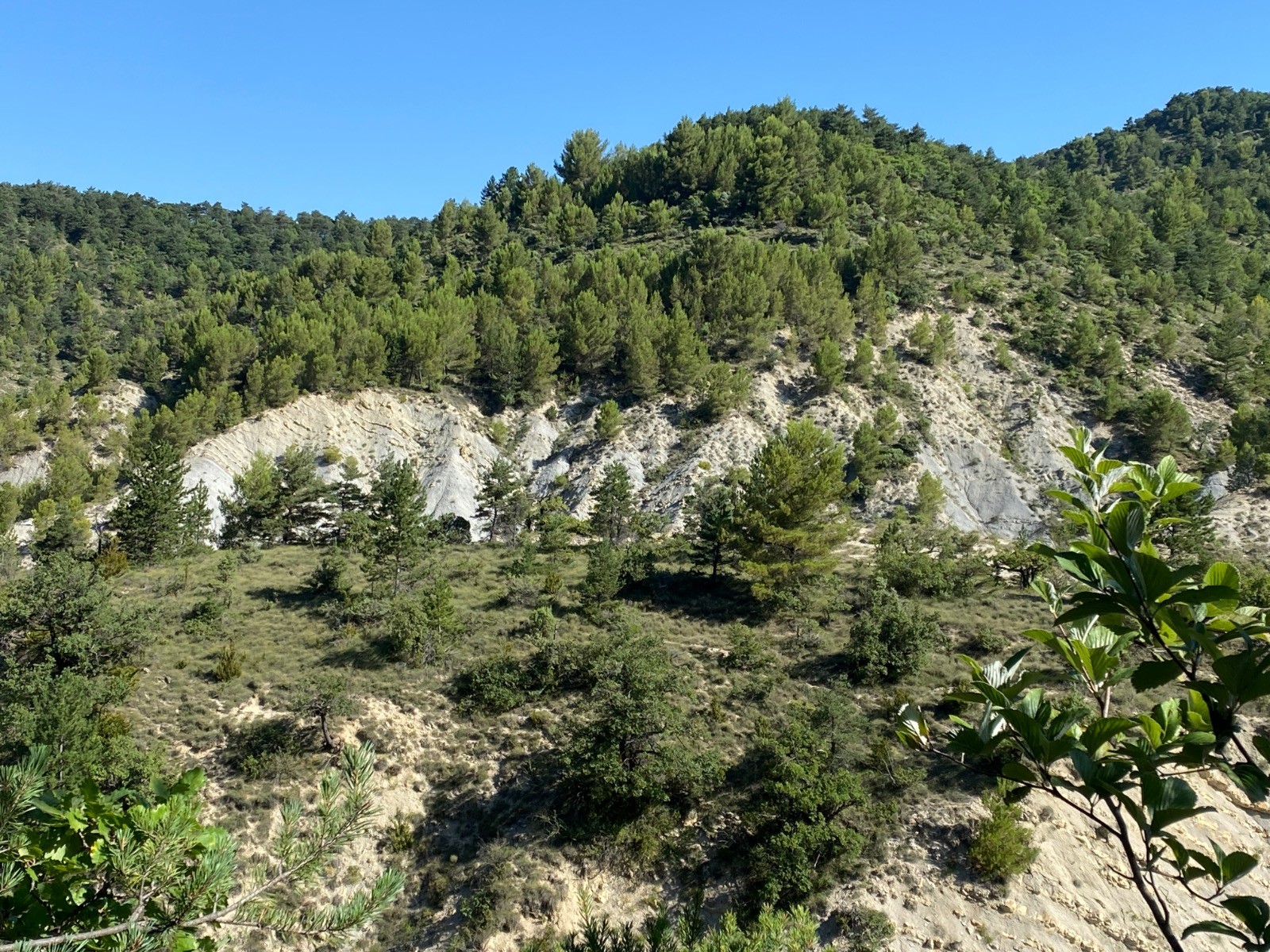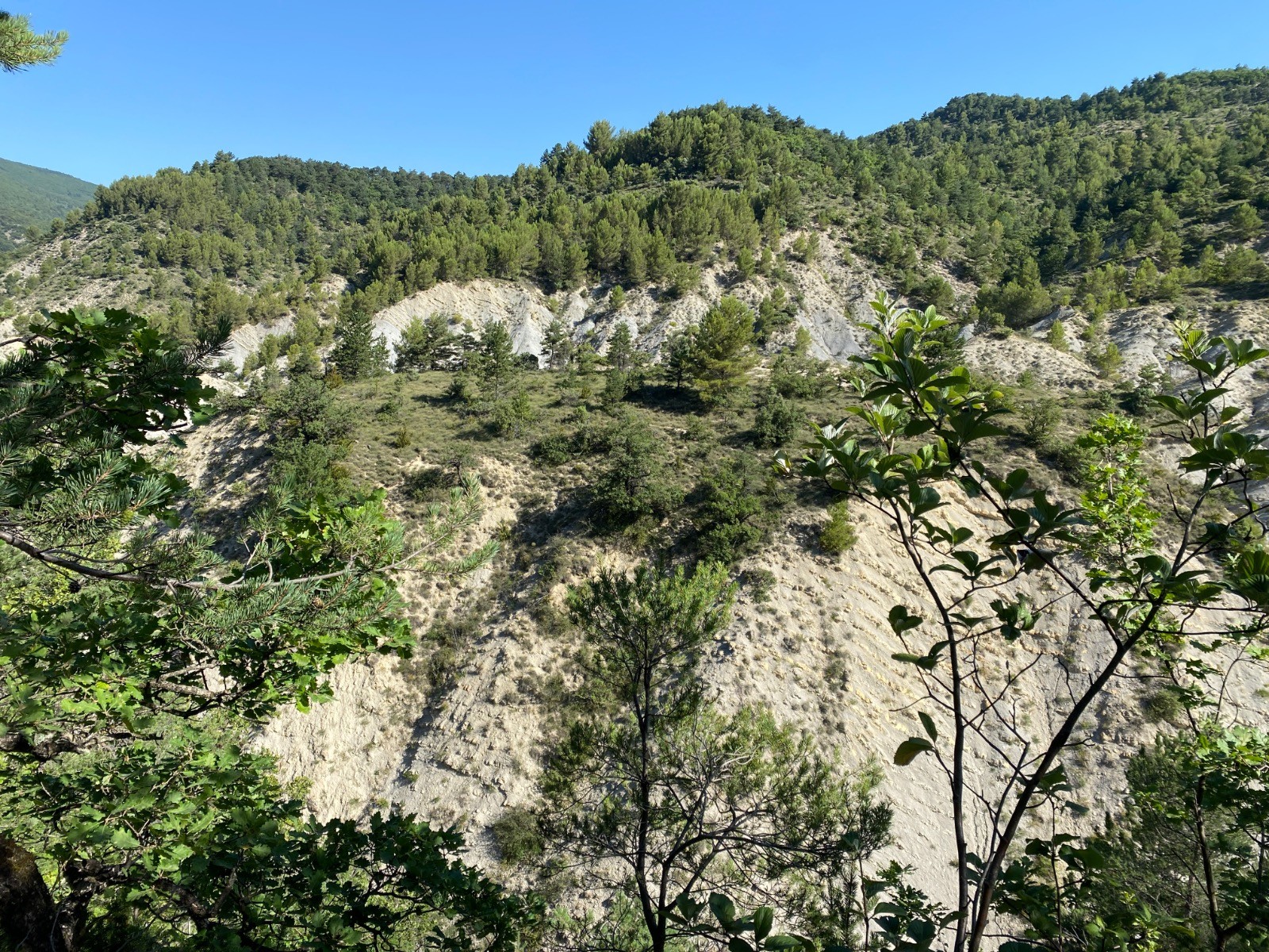 Le GR emprunte un chemin ombragé avec de belles marnes sur la droite. ( photos no 8 & 9 )