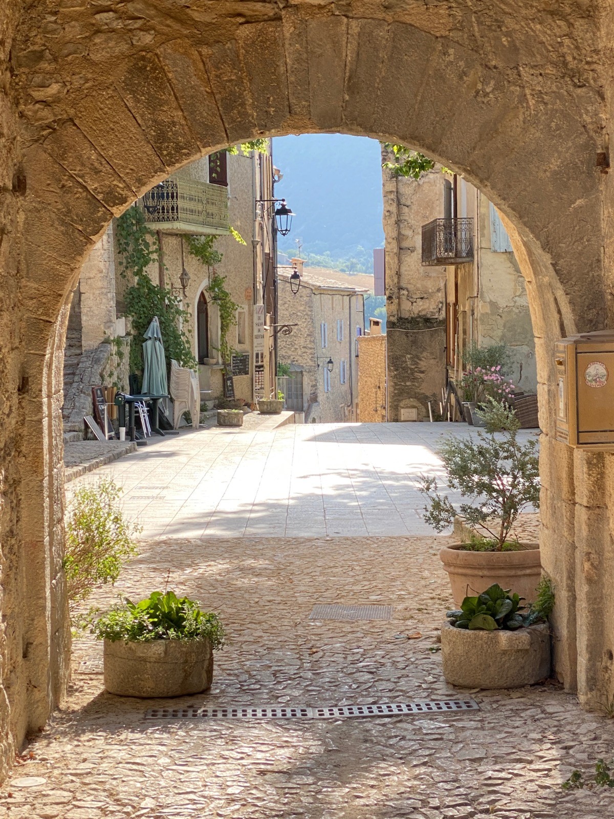 Départ place de la mairie de Montbrun les Bains où tôt ce matin il y an encore quelques places.