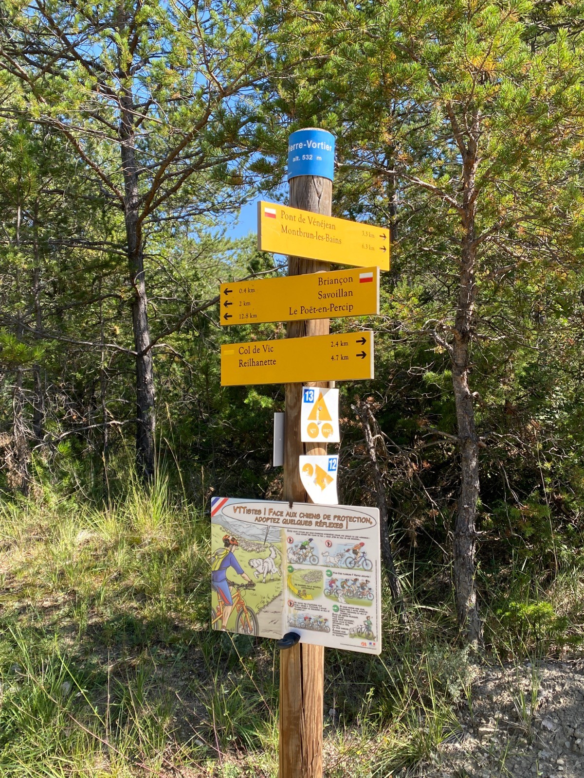 De nombreux panneaux nous informent sur la présence éventuelle de patous.