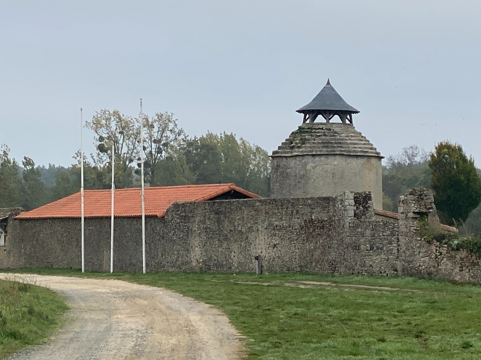 Les ruines, accompagnées d’un pigeonnier ancien et de clôtures paysagères, laissent deviner la grandeur passée du site.