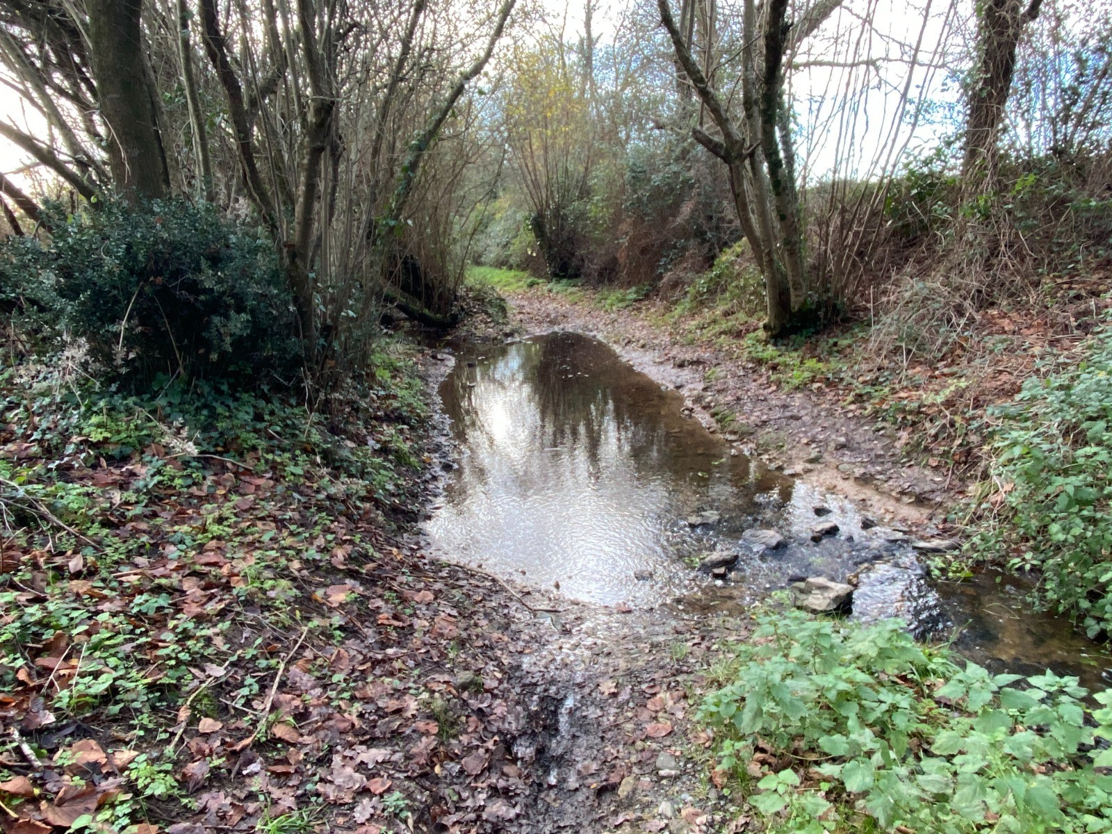 Plus loin un ruisseau s’est formé sur le chemin, rendant le passage praticable uniquement avec des bottes ou de très bonnes chaussures.( photo no 8 ); sinon c'est un bain de pieds assuré.