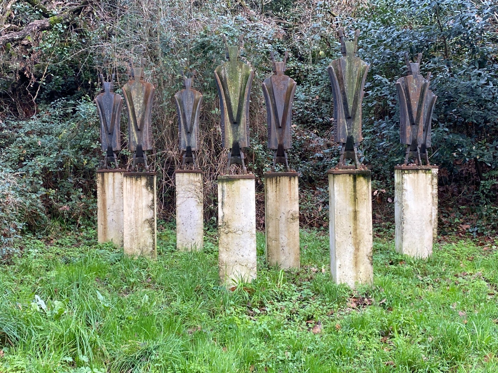 L’œuvre Worthies ( photo no 12 ) est une installation pérenne composée d’un ensemble de neuf sculptures réalisées à partir d’éléments d’aiguillage ferroviaire importés de Pennsylvanie, une région historiquement liée à la construction de réseaux ferroviaires aux États-Unis.