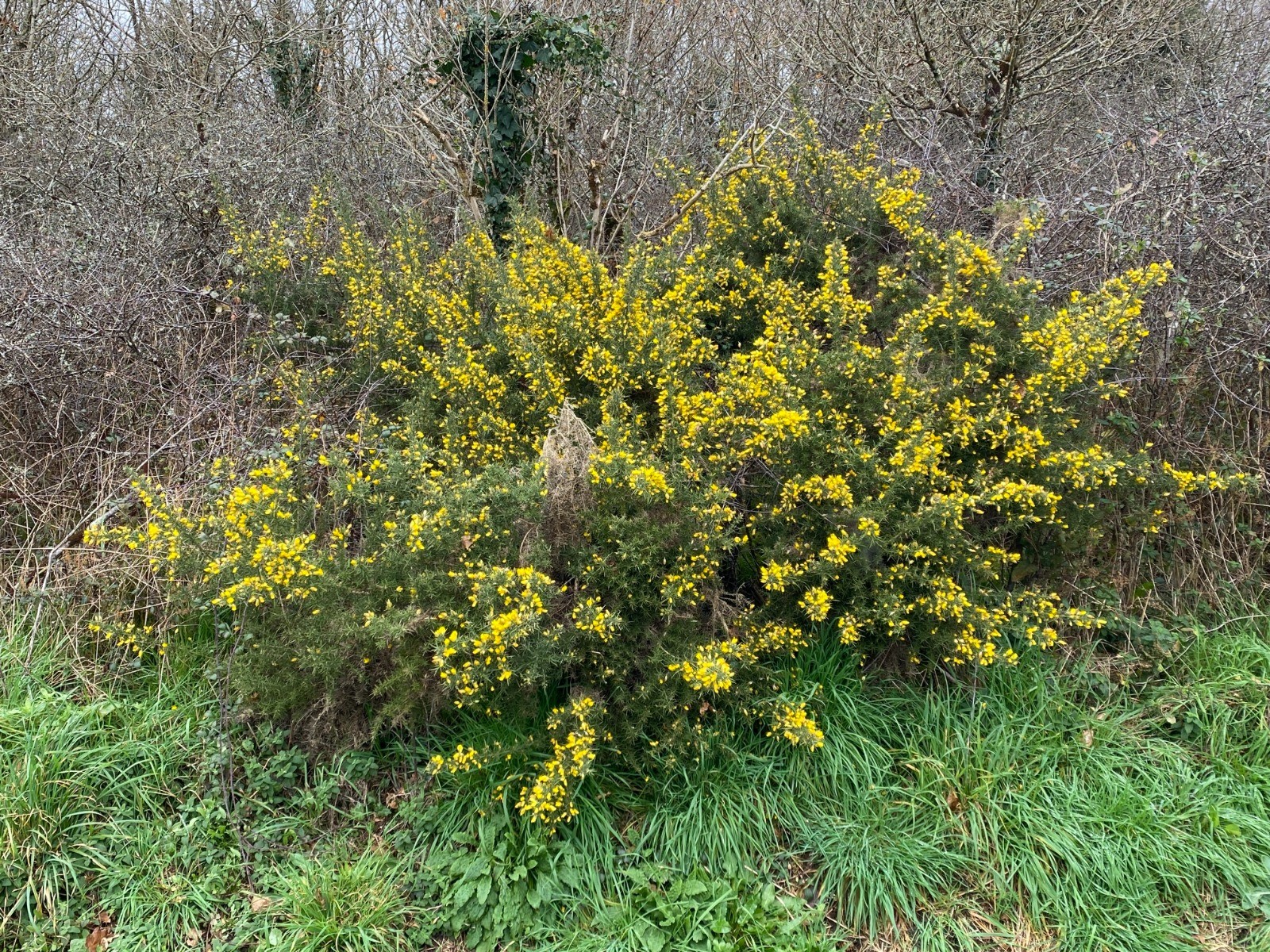 Parmi les plantes nous voyons de temps en temps, dans les haies, une fleur jaune typique de la Bretagne : des ajoncs ( arbuste épineux ) à ne pas confondre avec les genêts ( sans épine et fleurissant au printemps ). ( photos no 3 & 7 )