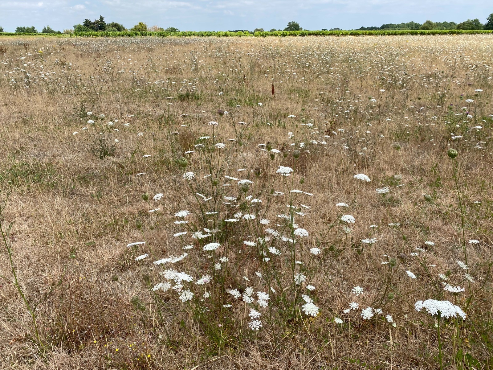 Photo no 2 : Le grand moment des carottes sauvages commence : une aubaine pour les pollinisateurs qui n’ont plus grand chose à butiner surtout avec la sécheresse.