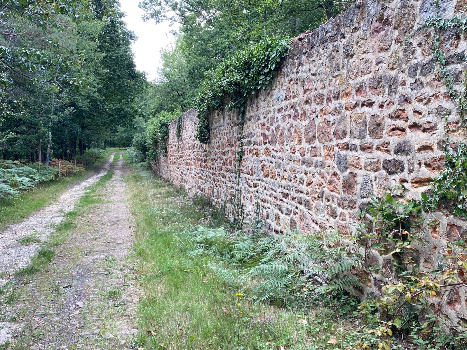 Kilomètre 4 nous entrons dans la forêt de la Lande. Le chemin est bordé d'un long mur ( photos no 8,10 et 11 ) de près de deux mètres de hauteur.