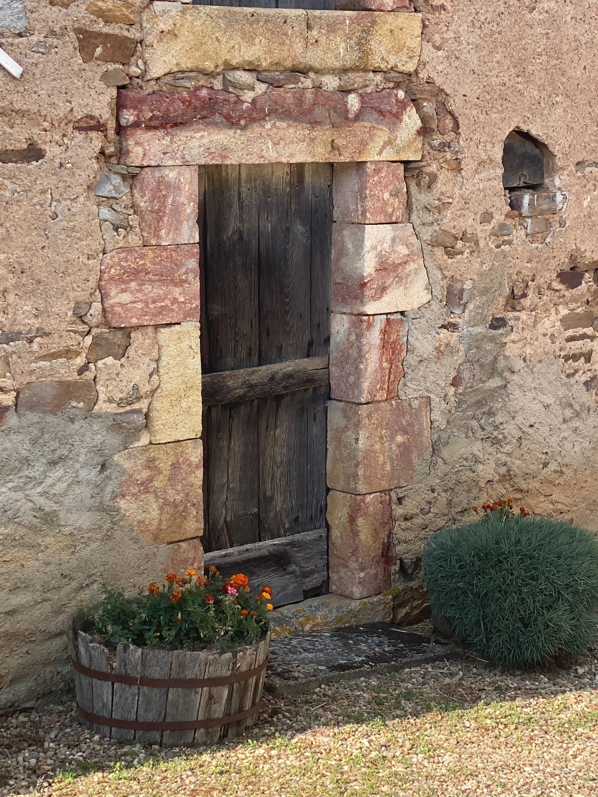 Le départ a lieu dans le lieu-dit de Puyravaux où en effet de nombreuses maisons anciennes ( photos no 1 & 2 ) sont construites avec ce fameux grès rose.