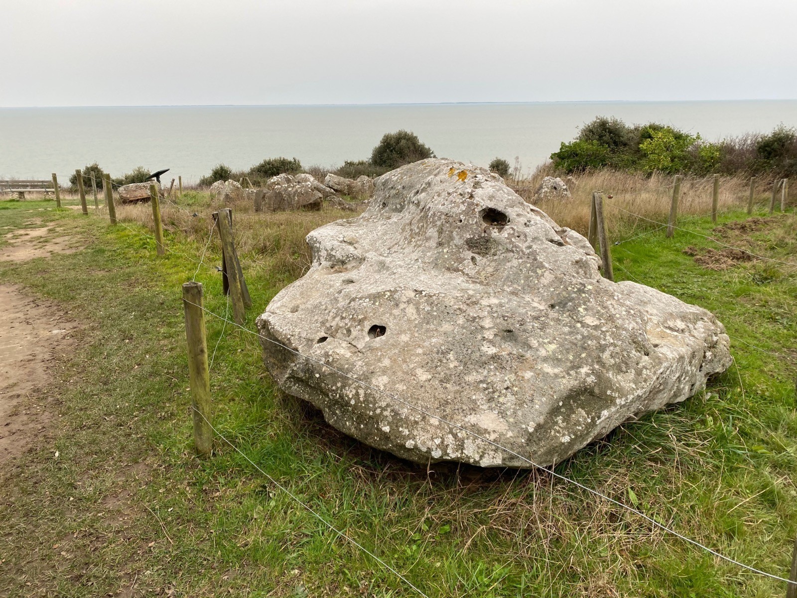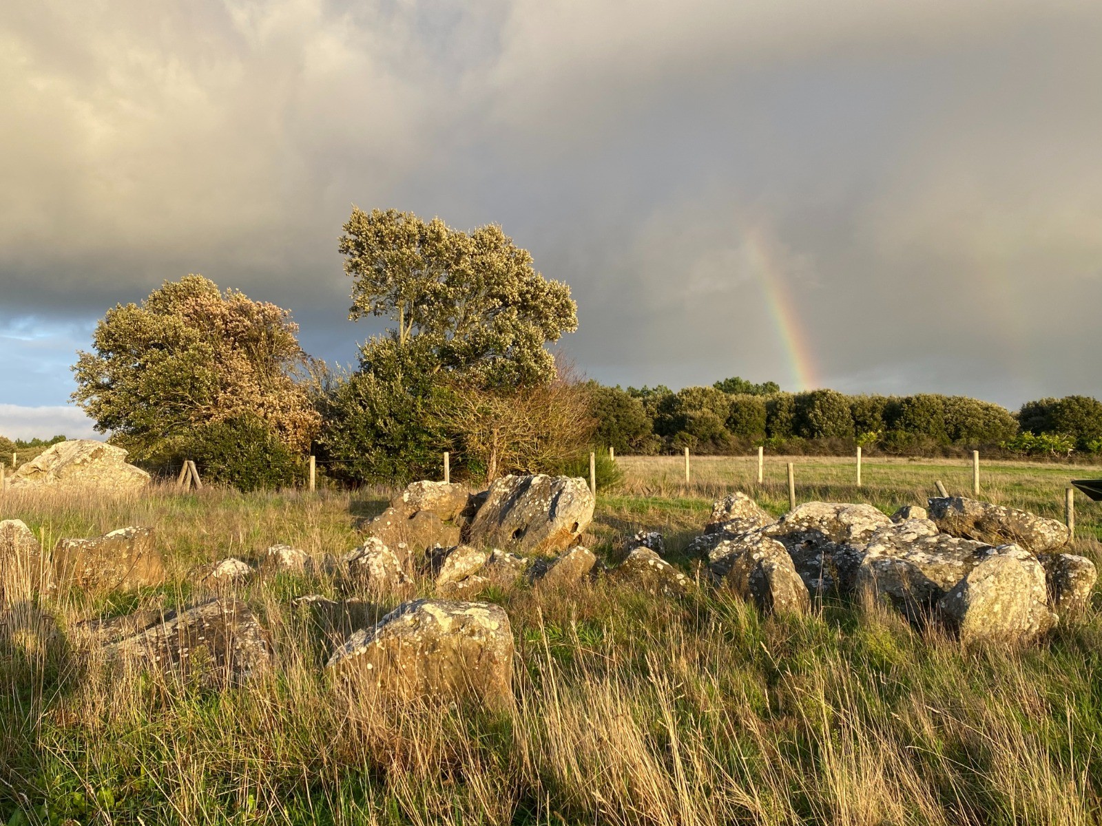 NB : Si présence d'animaux dans le champ : contourner en descendant jusqu'à la mer puis à droite ( dolmen ) et vous retrouvez le chemin à gauche.