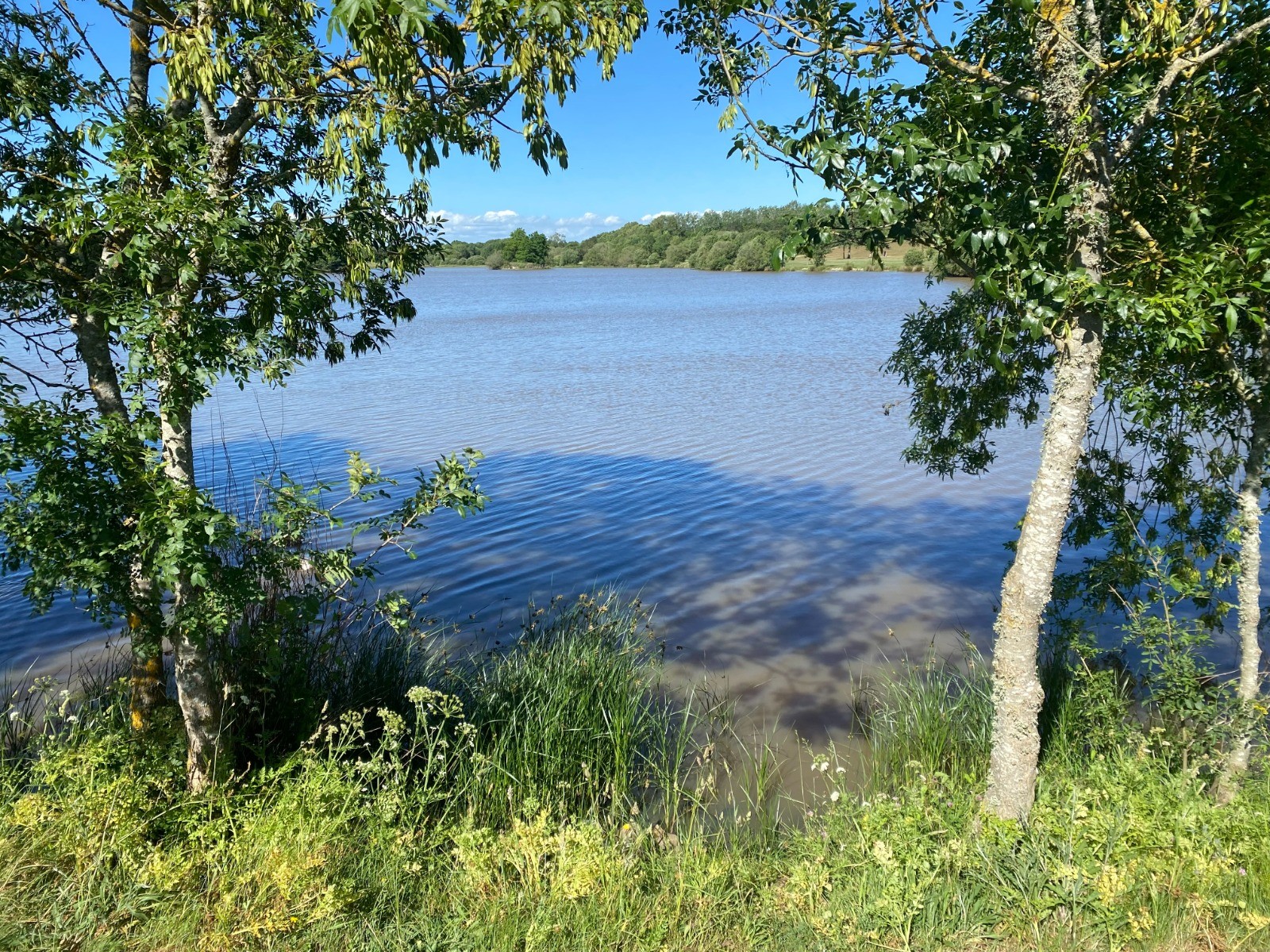 Après le lieu-dit "Nombreuil" nous longeons les trois étangs aménagés pour la pêche, la promenade, la détente sur plus de deux kilomètres.