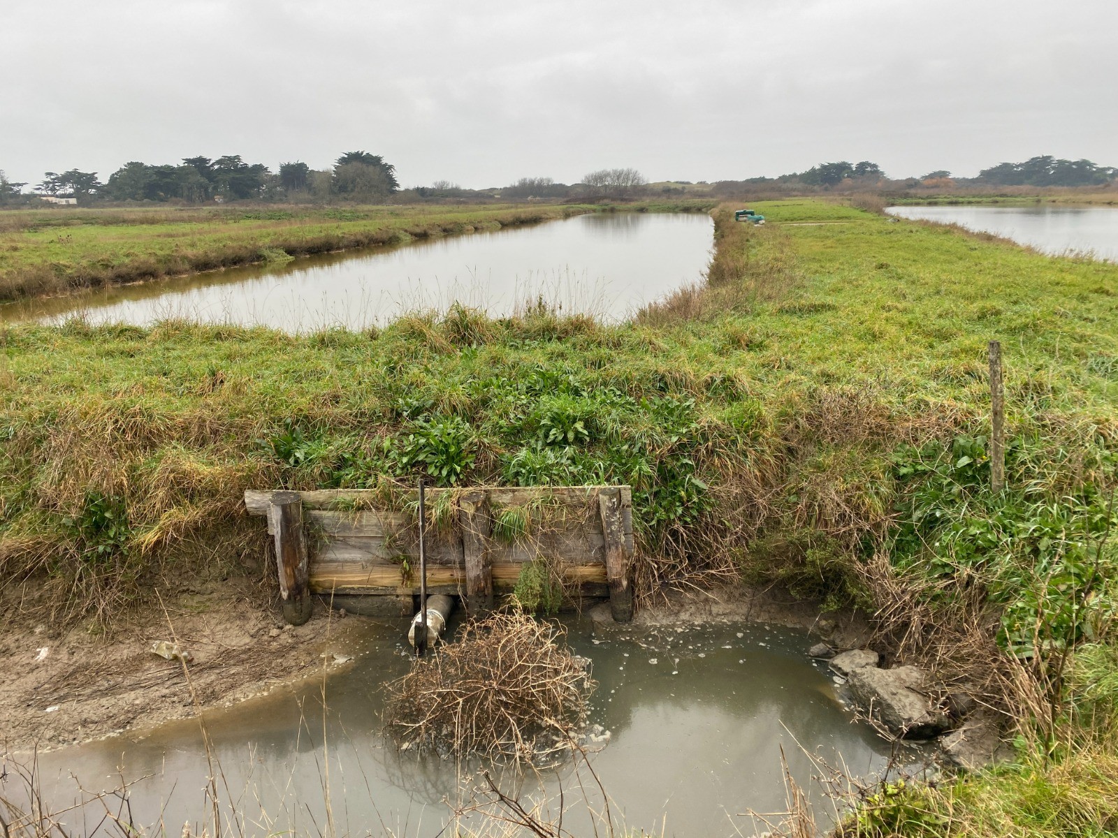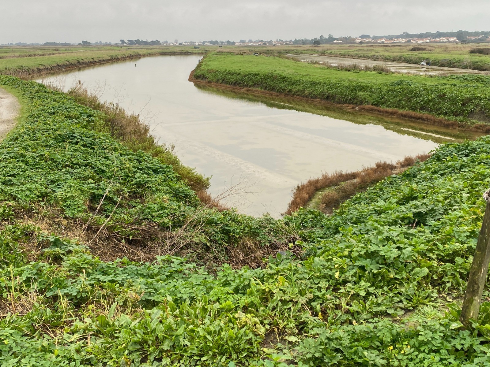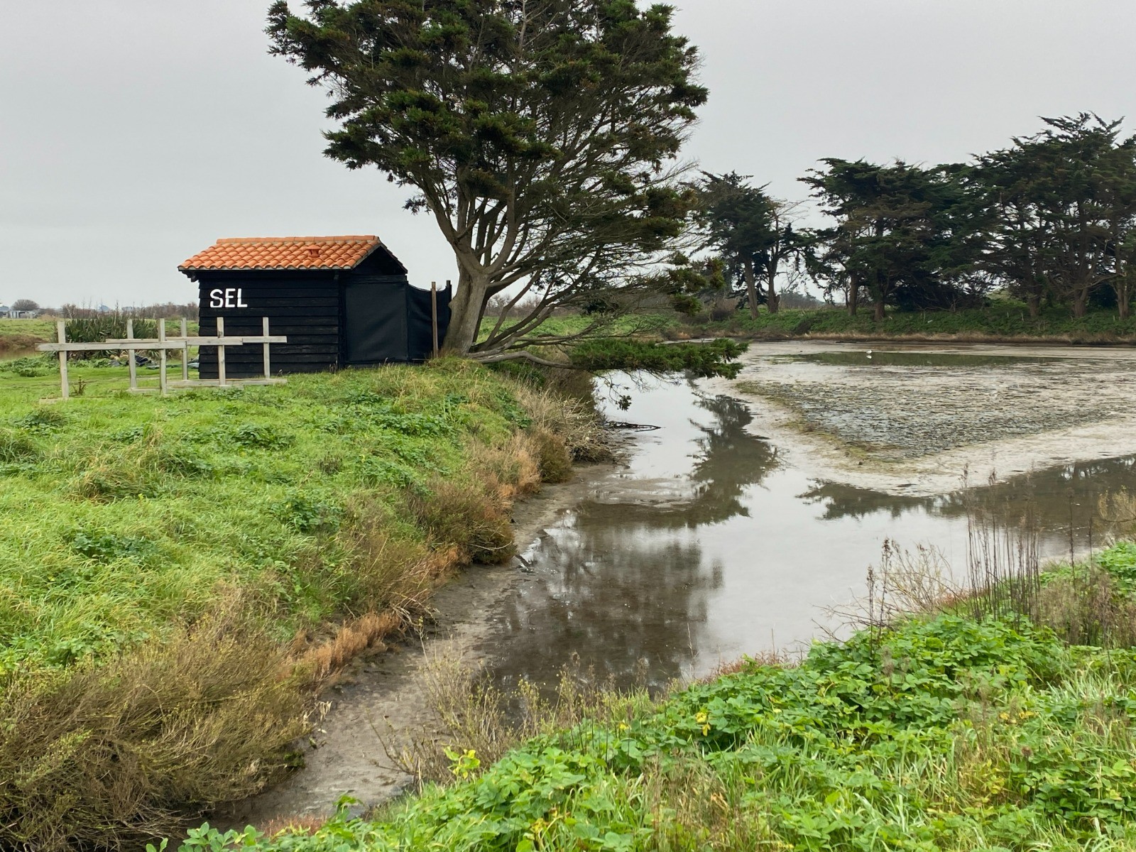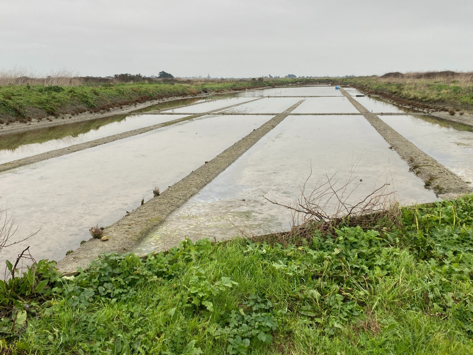 Repos du Saunier: le marais est « noyé » sous une épaisseur d'eau de mer qui va le protéger du gel et des intempéries jusqu'au printemps suivant