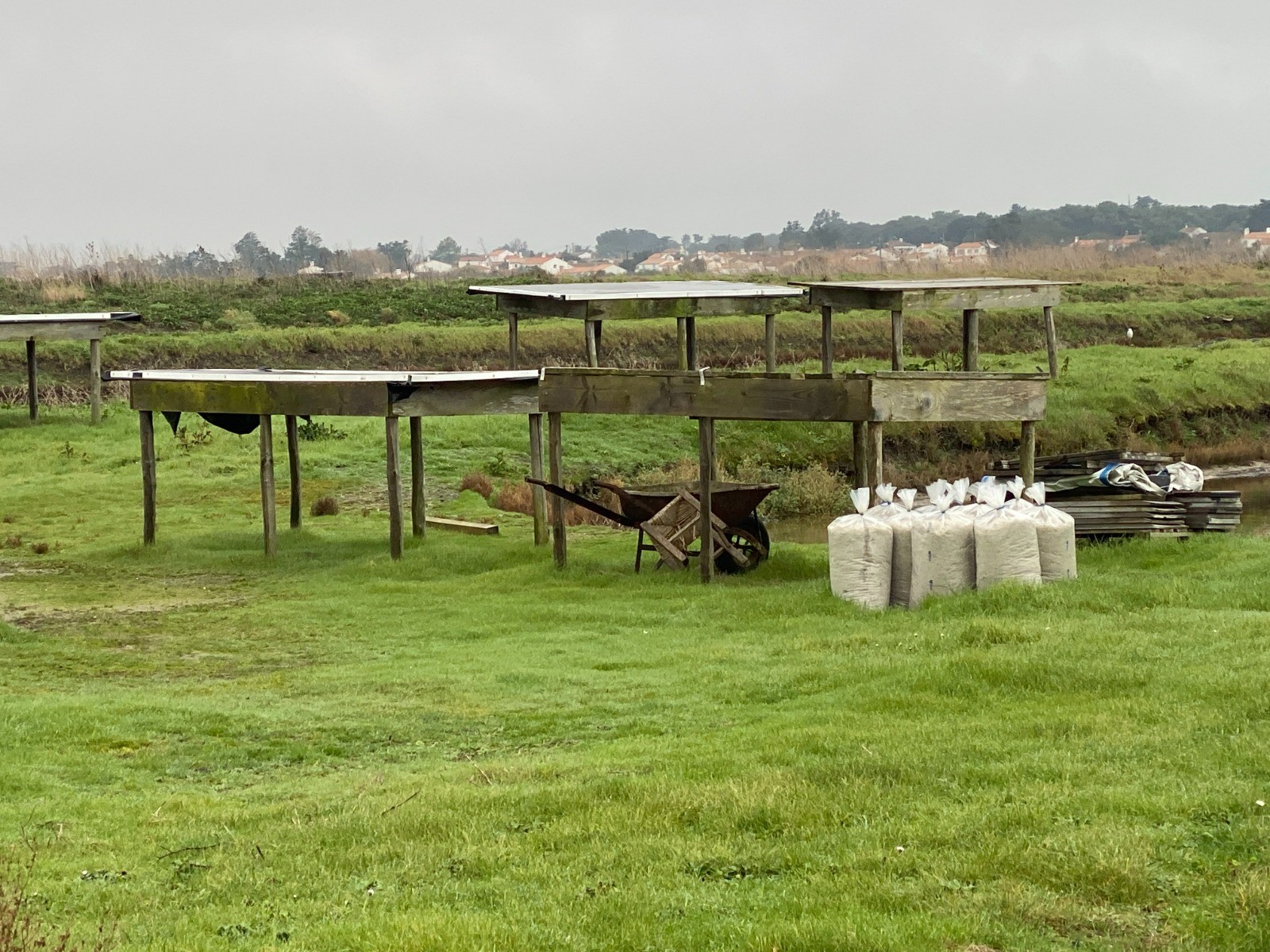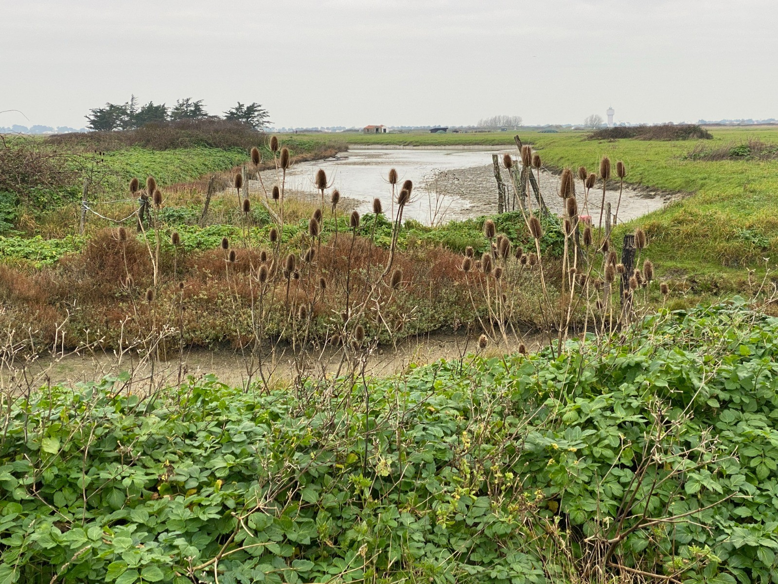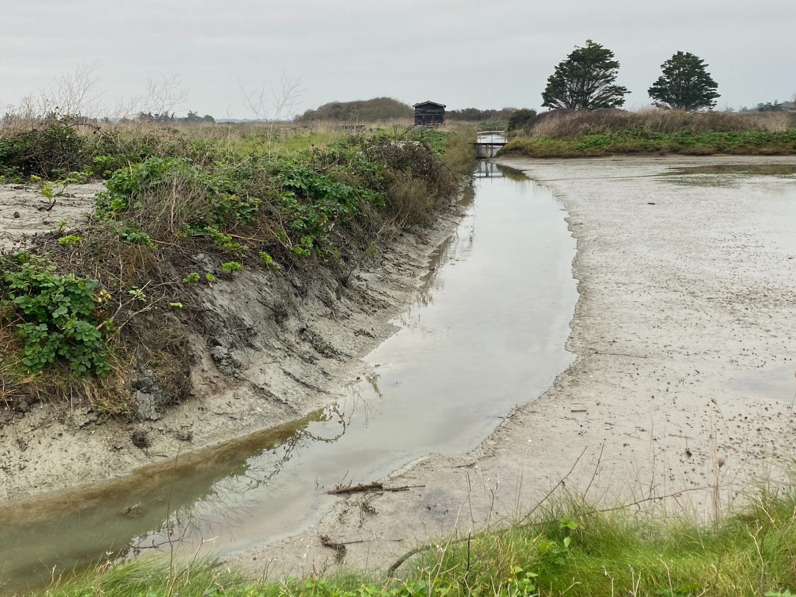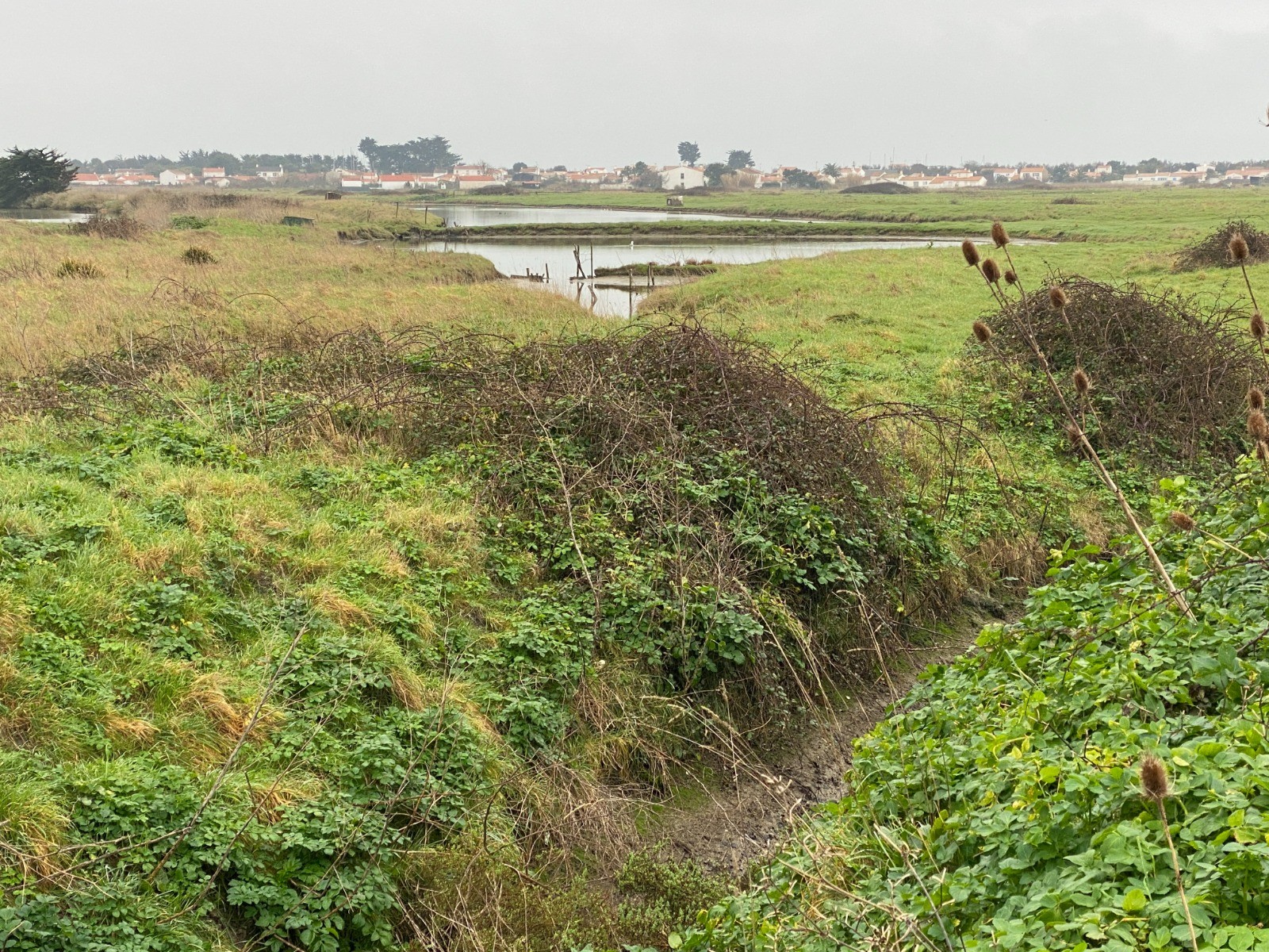 Repos du Saunier: le marais est « noyé » sous une épaisseur d'eau de mer qui va le protéger du gel et des intempéries jusqu'au printemps suivant