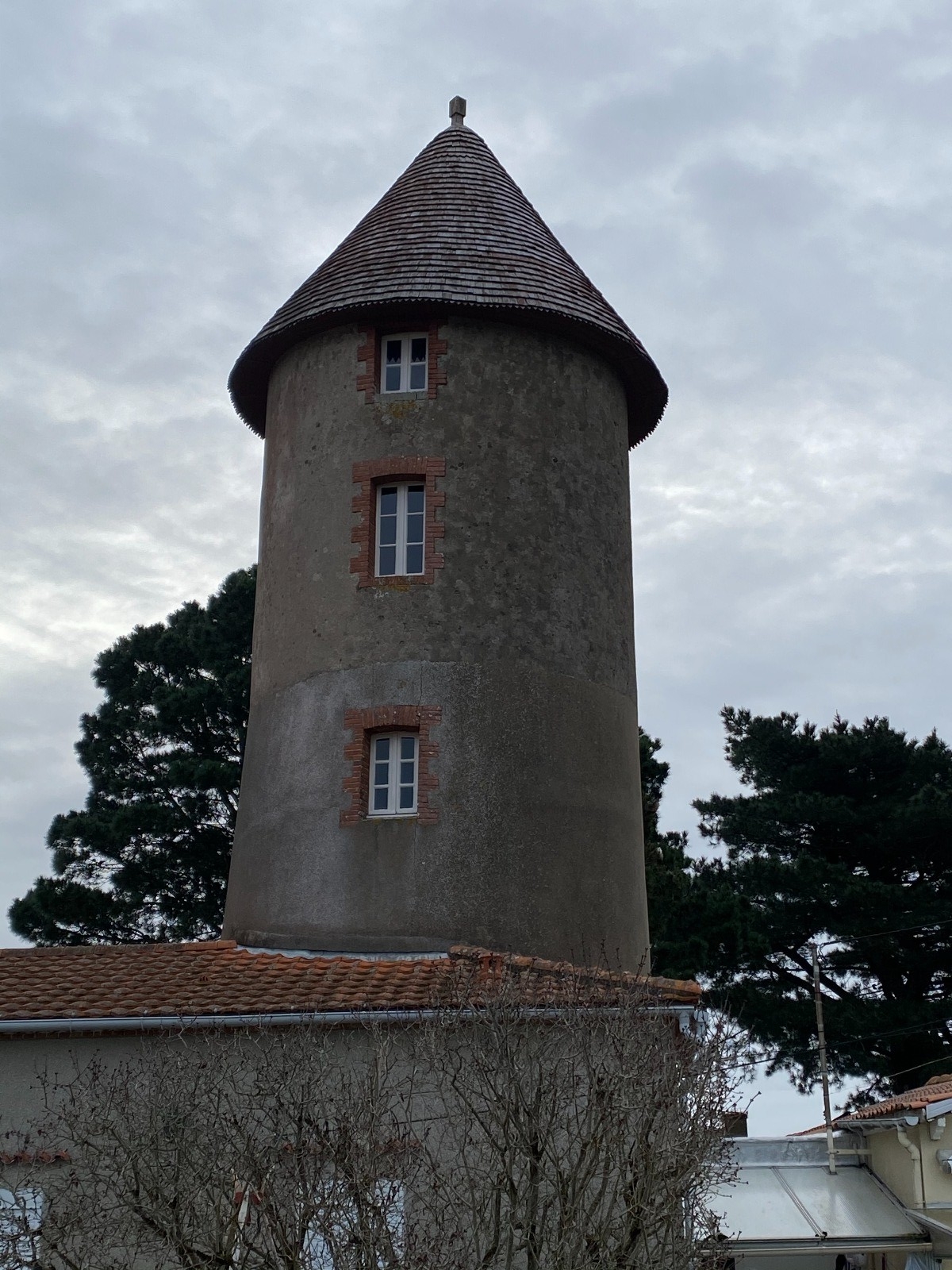"Dominant fièrement le bourg de Saint Michel, à quelques centaines de mètres du centre ville, ce moulin daté de 1798 et haut de quatre étages était à l'époque équipé d'ailes Berton et deux paires de meules.