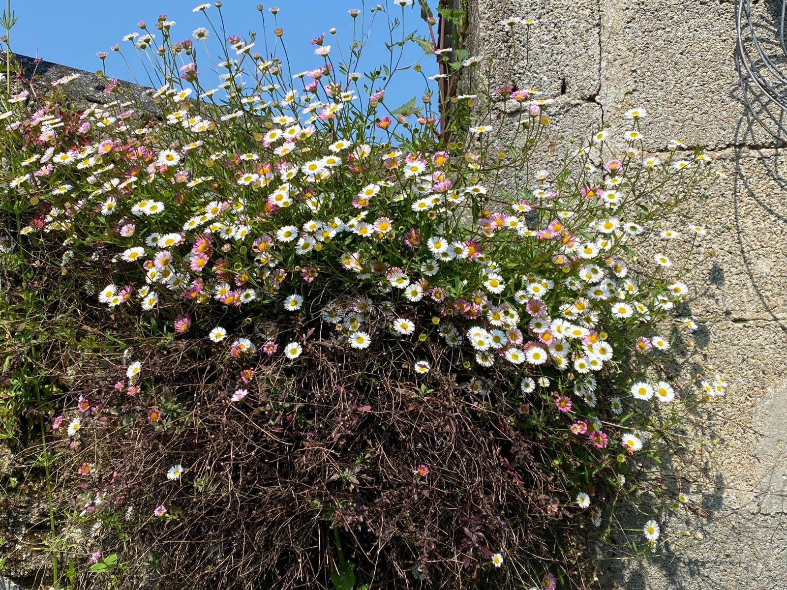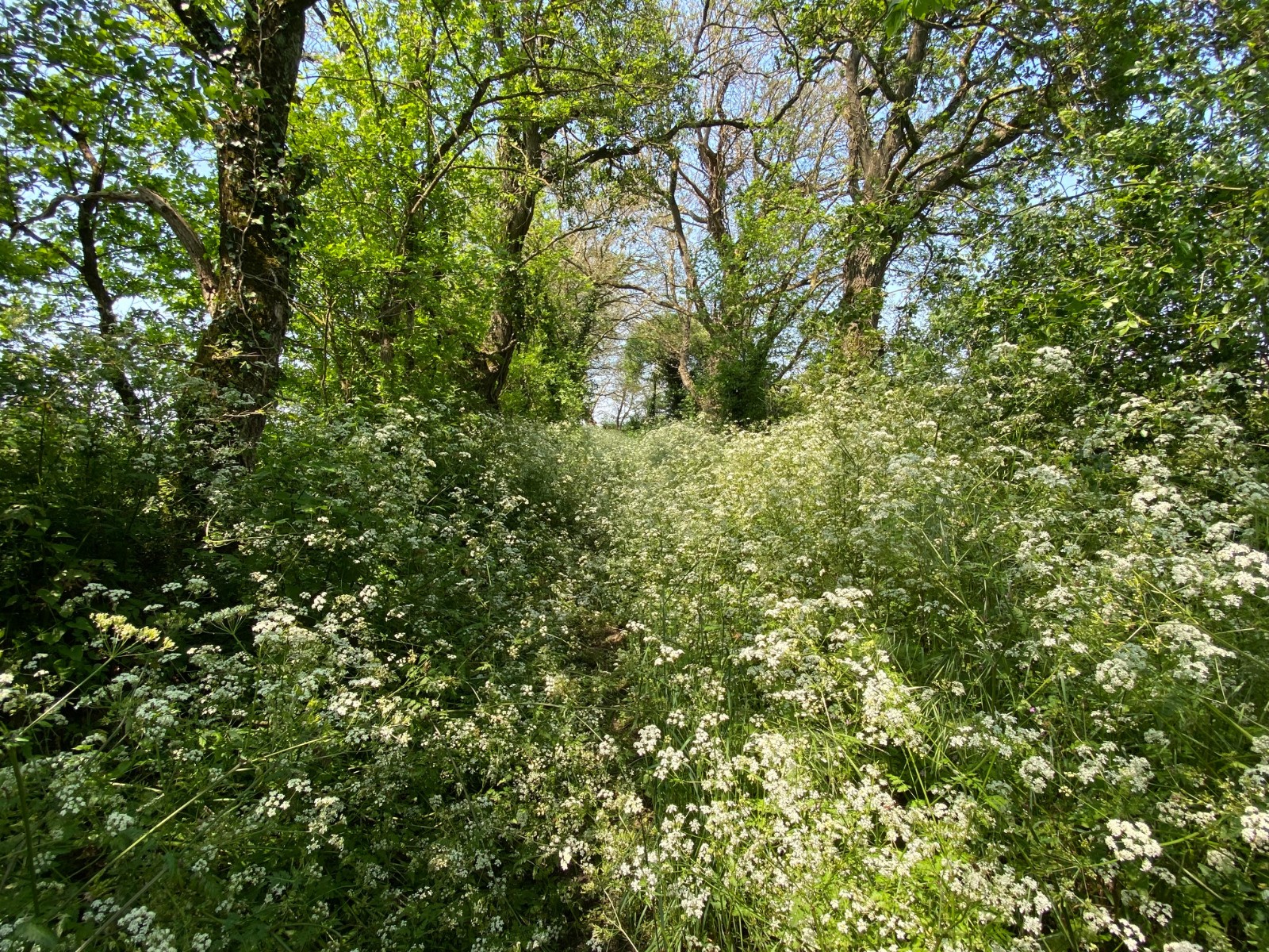 Nous avons à faire à de beaux chemins bordés de cerfeuils sauvages et autres fleurs ( compagnon rouge, herbe à robert, nombrils de vénus... )