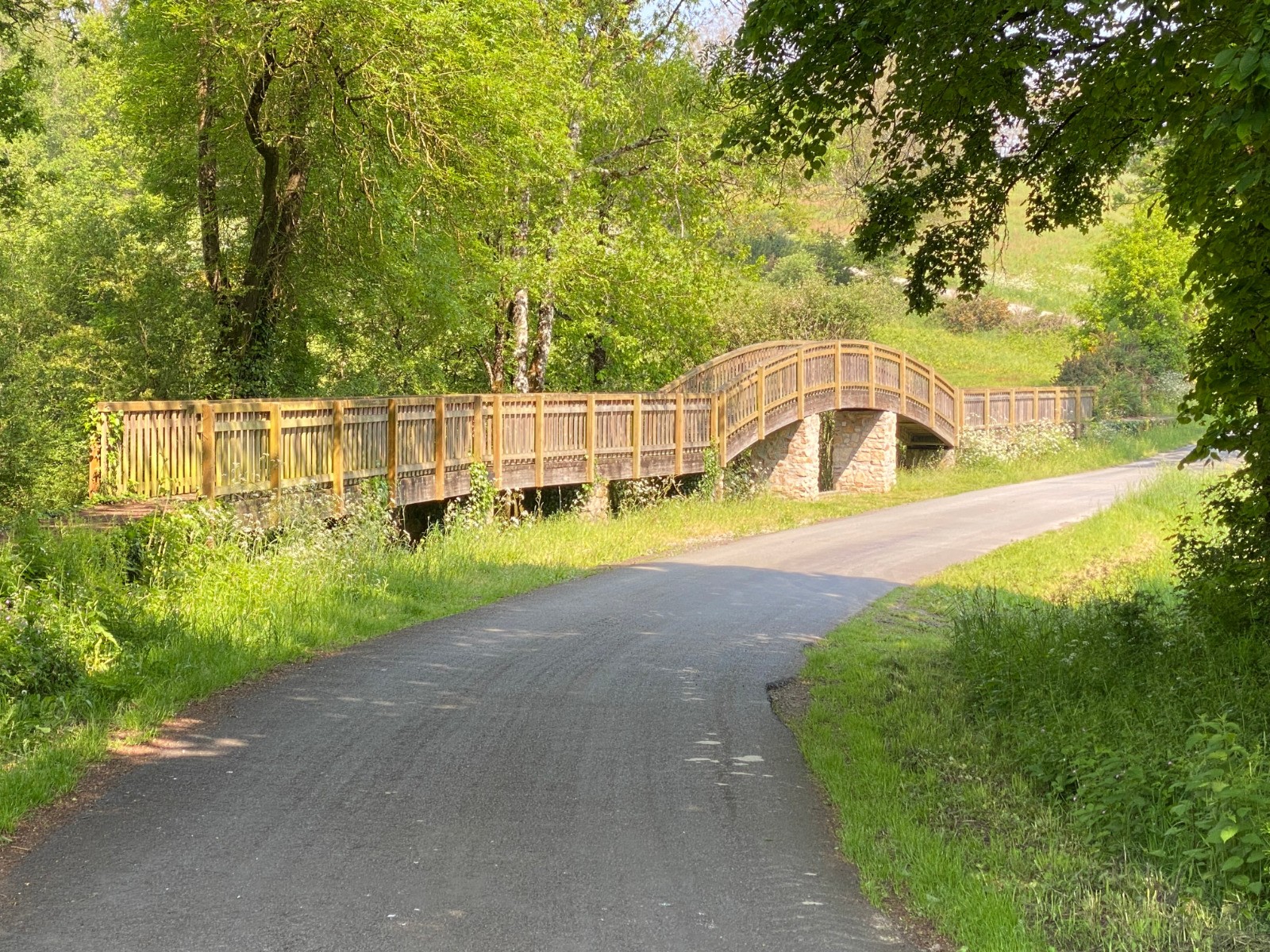 Les bords de la Vie sont tellement agréables que nous en profitons pour manger nos sandwichs au bord de l'eau et plus précisément devant le Pont de l'Orcelière.