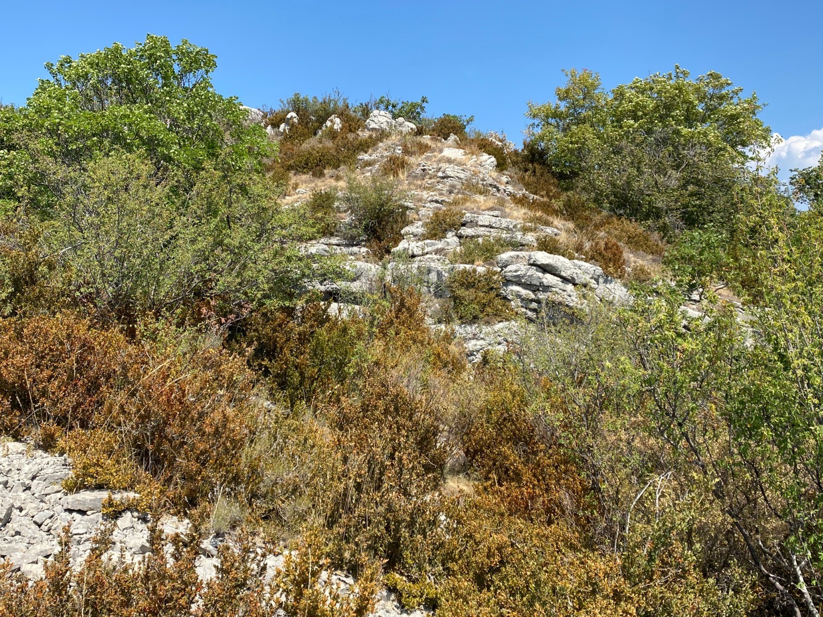 Ici le buis très présent souffre beaucoup de la chaleur et de la pyrale du buis ( papillon qui se nourrit du buis ).