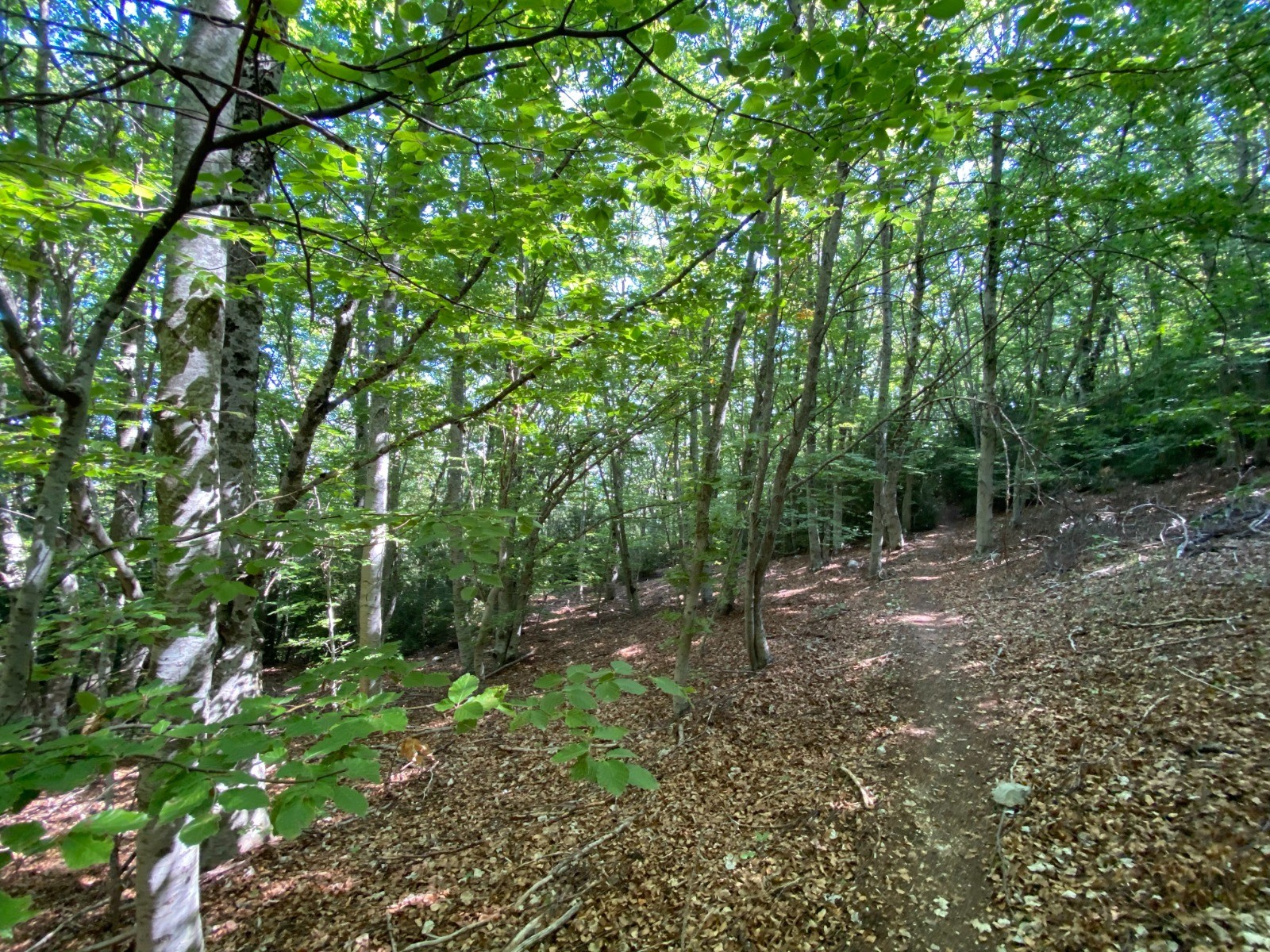 Rendus au col de Sanguinet nous entrons dans un chemin forestier où les hêtres nous apportent de la fraîcheur.