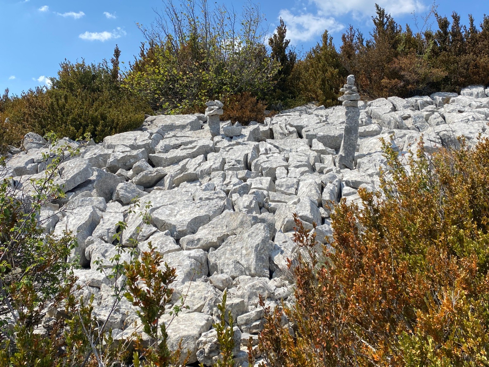 Une curiosité : De gros rochers entassés ici et là… on ne sait pas par quel mystère !