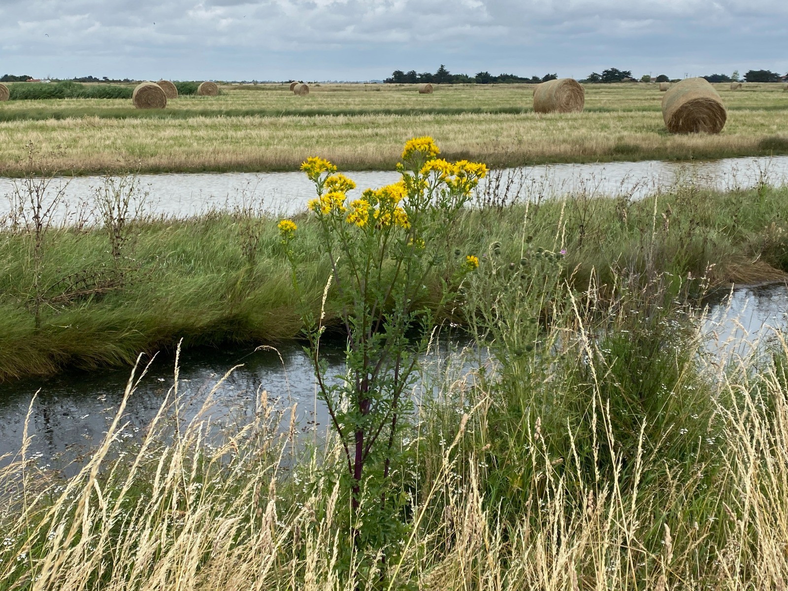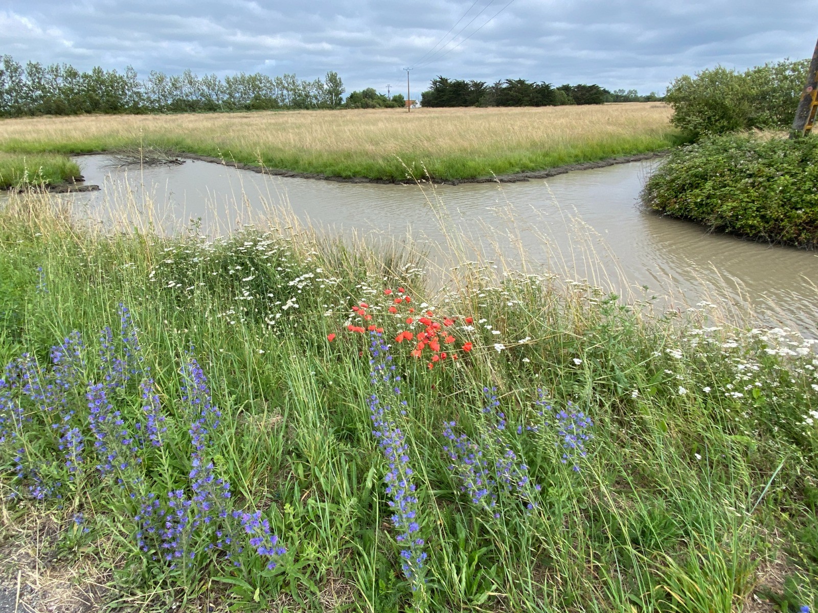 Au fil des kilomètres la flore change : matricaire, grande mauve, jacobée, genêt à balais, marguerite, vipérine, coquelicot, orchidée pyramidale, tamaris... et j'en passe.