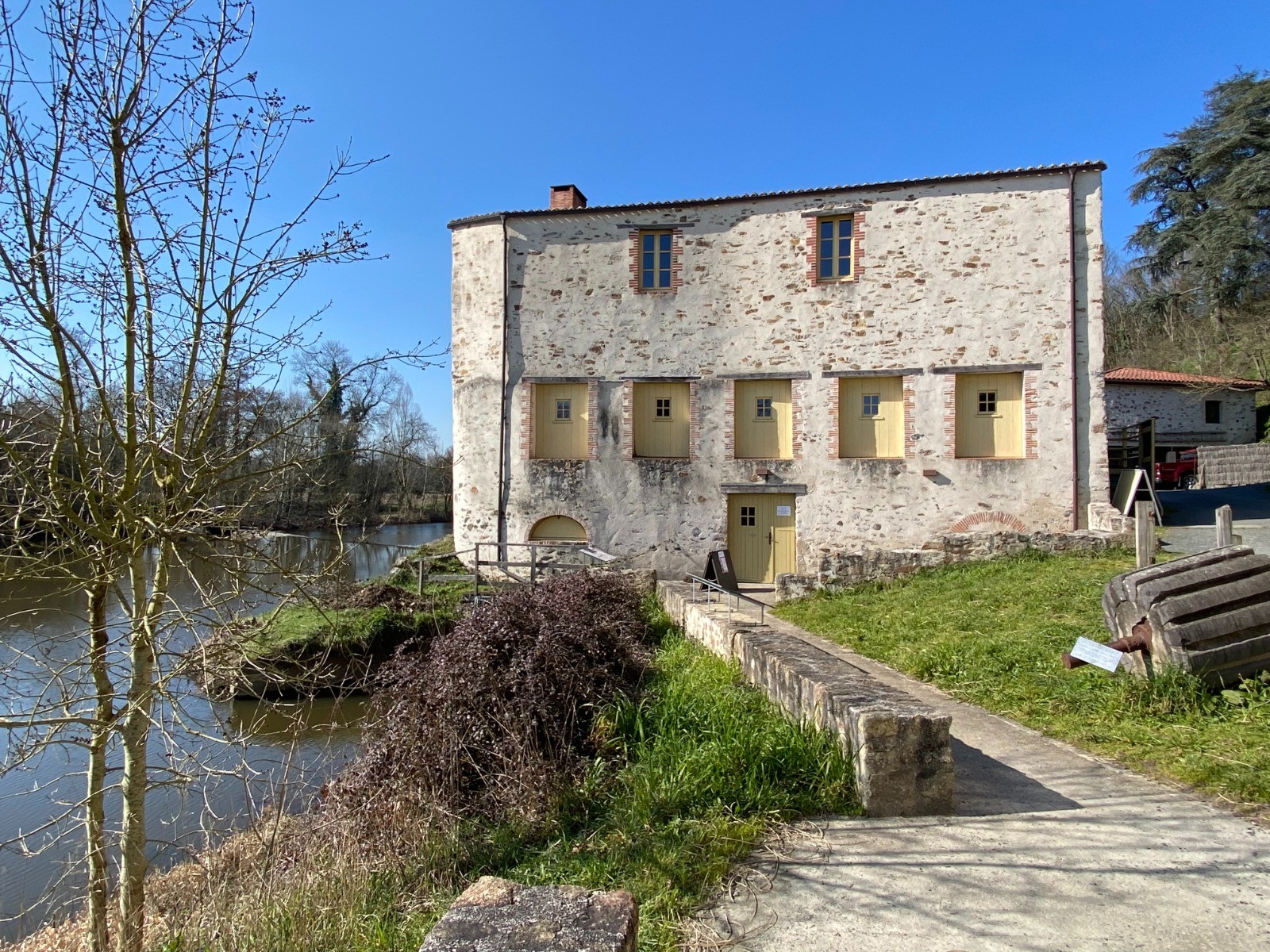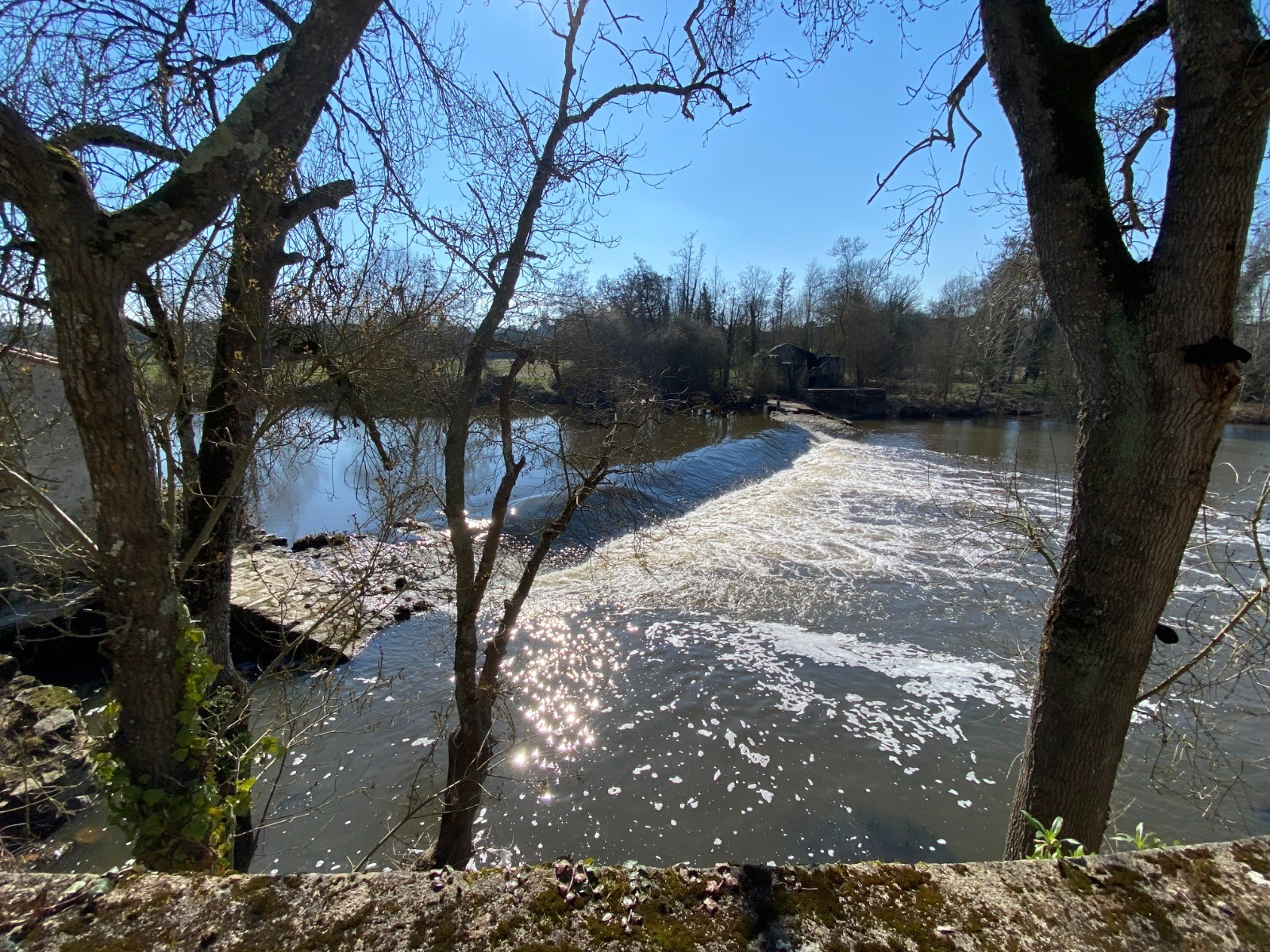 Quelques mètres et nous voilà au bord de la Sèvre Nantaise dominée par le moulin à papier du Liveau. ( photo no 4 )