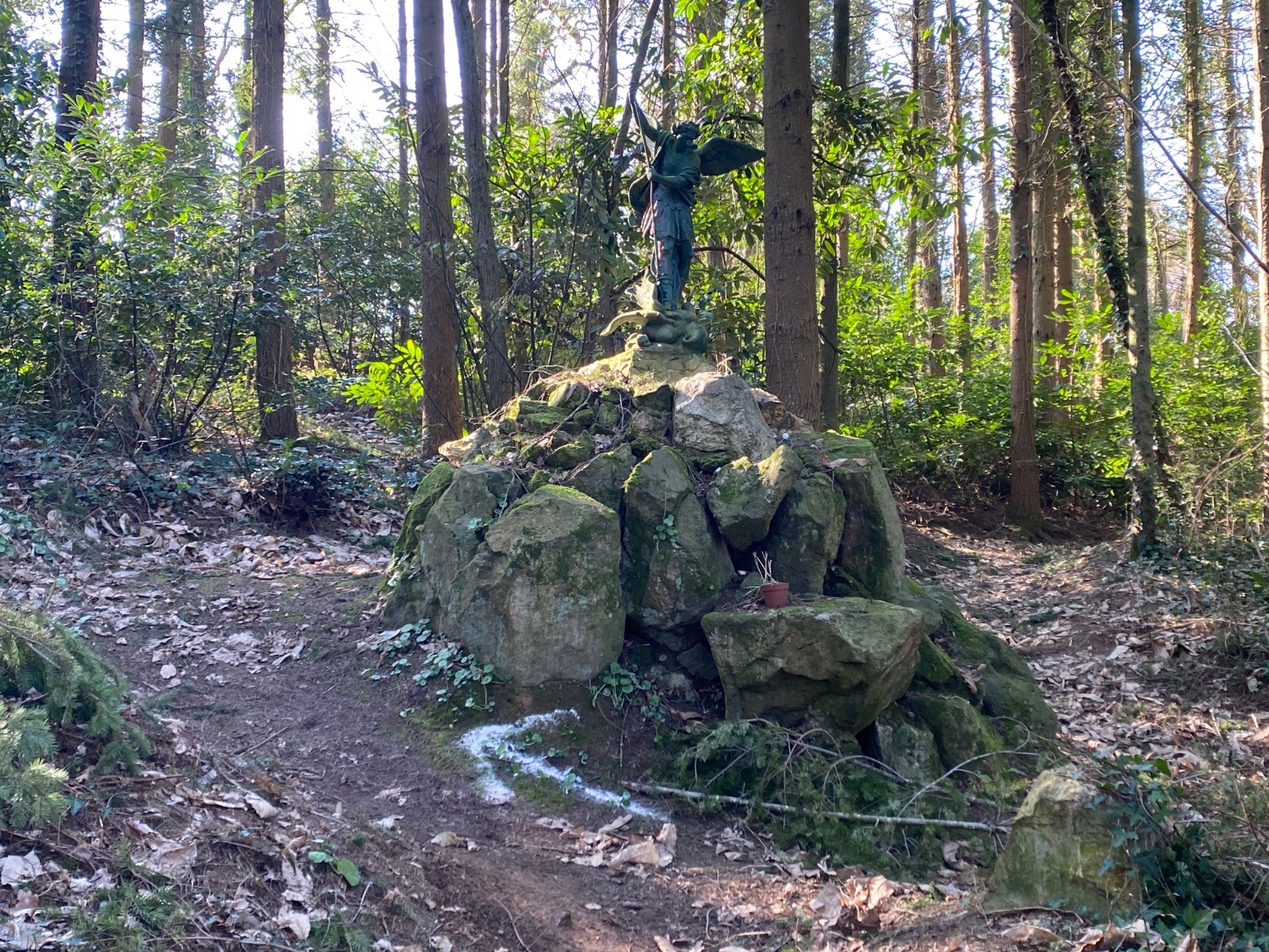Cette grotte a été construite à l’initiative de l’abbé Auguste Dauvier, alors vicaire à Bains, par dévotion envers la Vierge.