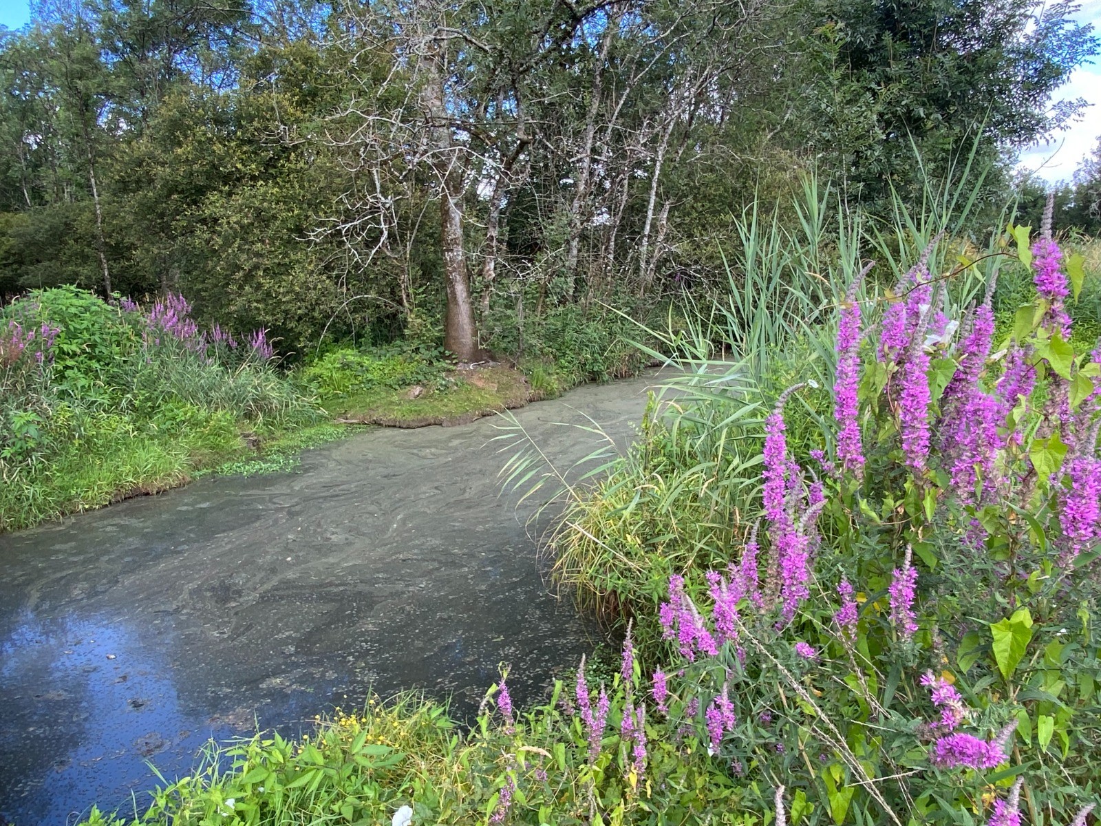 L'Acheneau coule paisiblement entre le lac de Grandlieu et rejoint le canal de Buzay.
